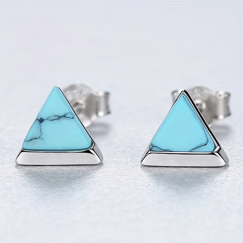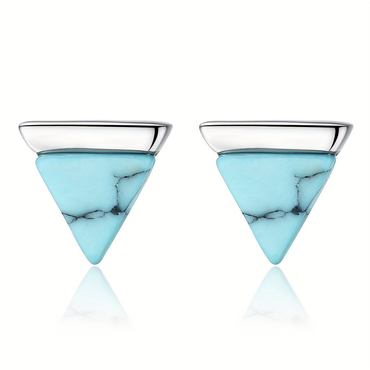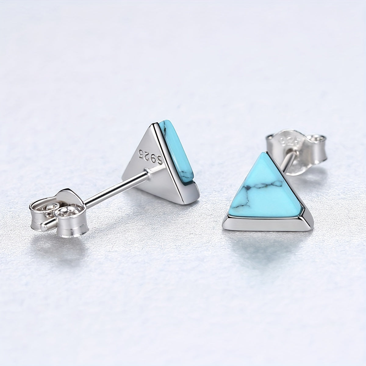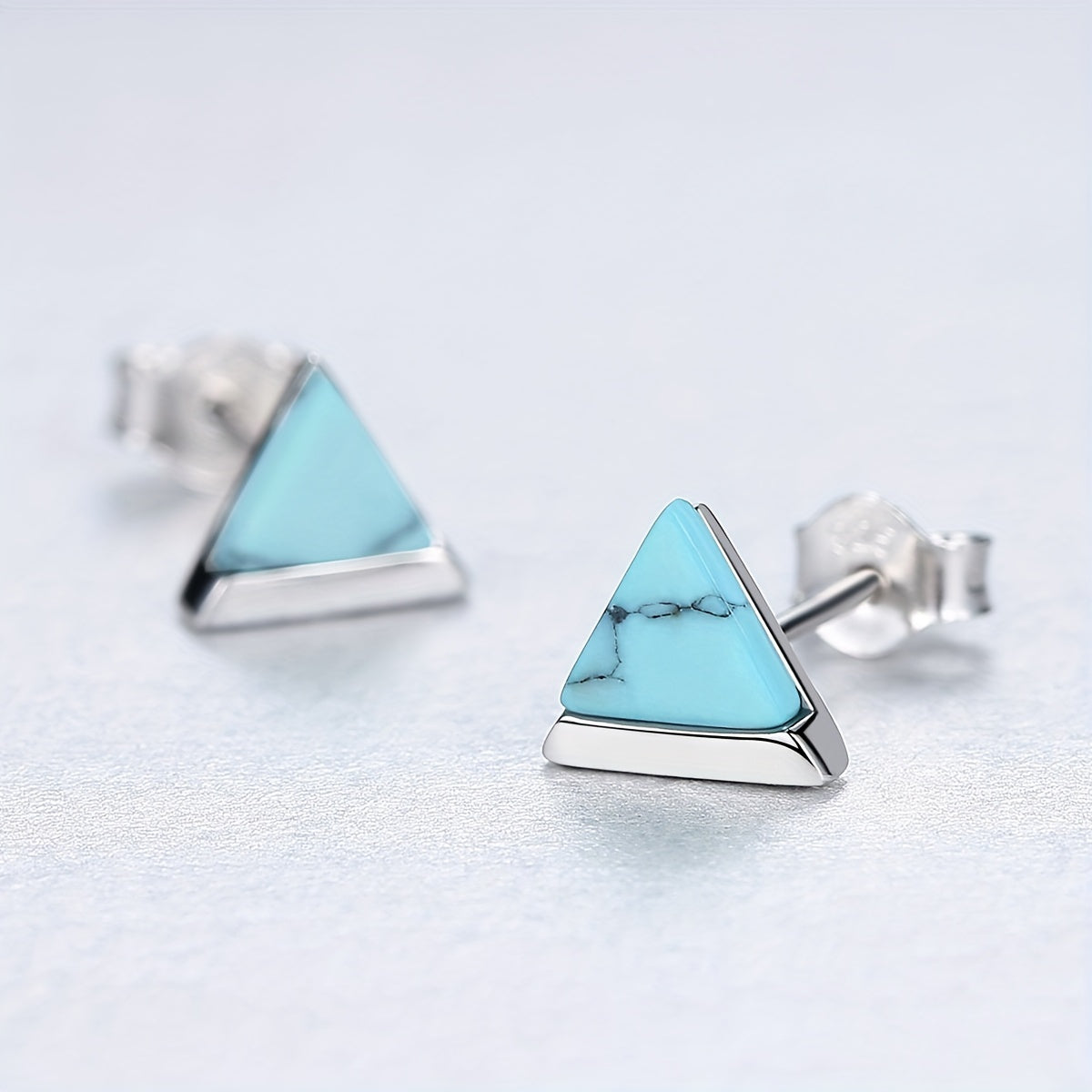 These triangle turquoise stud earrings feature a minimalist style design, crafted from sterling 925 silver. A perfect gift for any female.