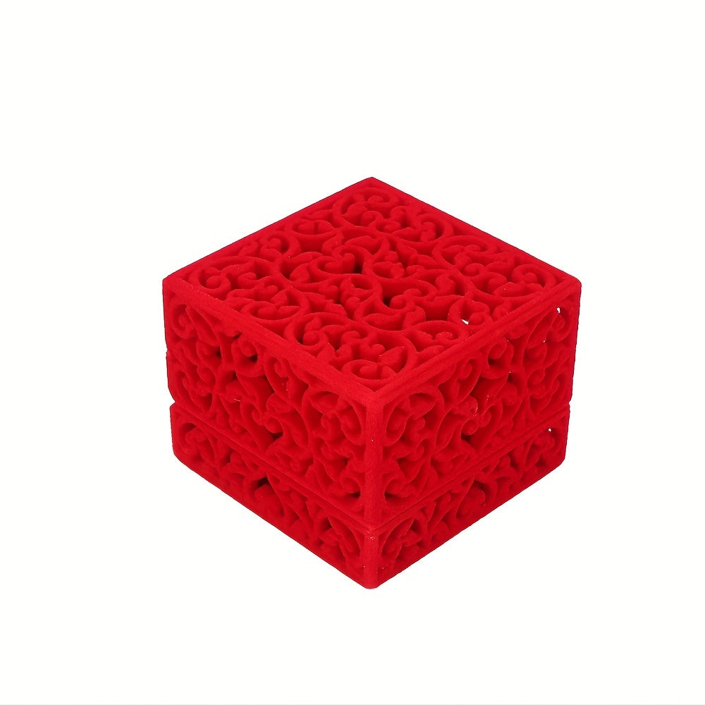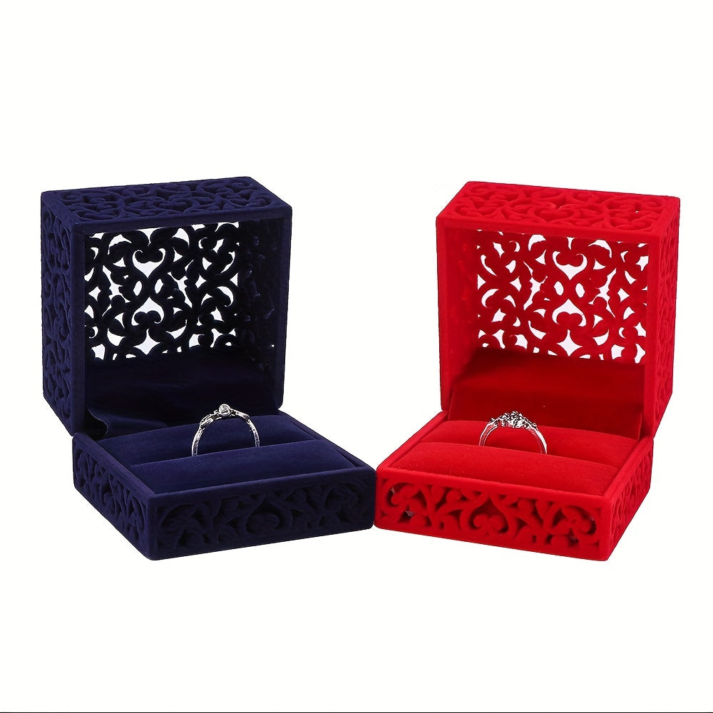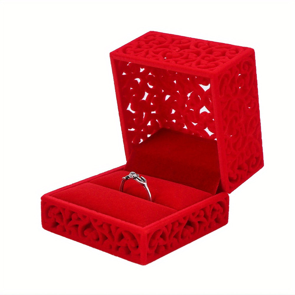 This exquisite velvet ring box features a delicate Chinese style design with hollow out details. Perfect for storing and showcasing engagement rings and other jewelry.
