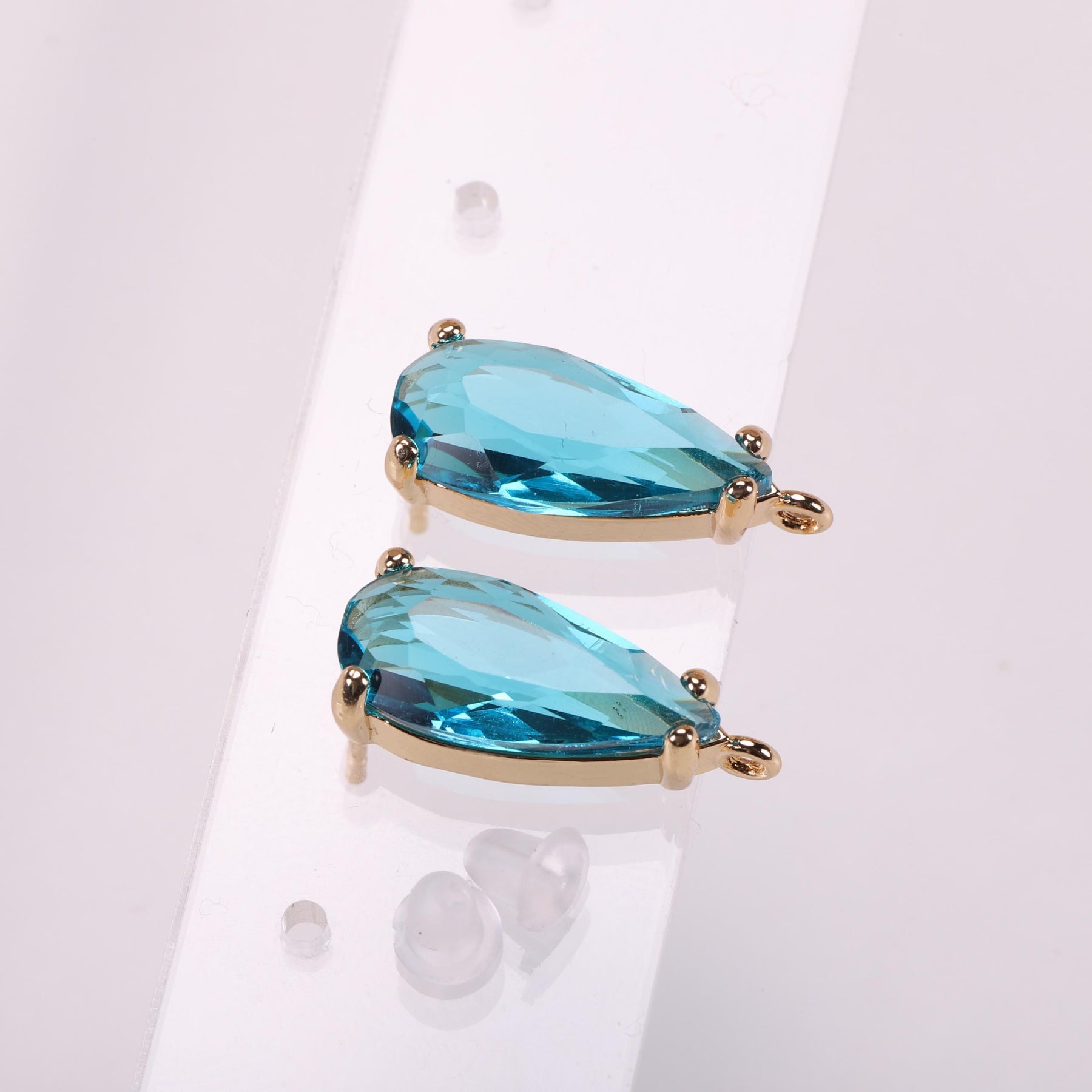 Enhance your DIY jewelry collection with these water drop cut copper ear pins. The golden plating adds a touch of elegance to your accessories.
