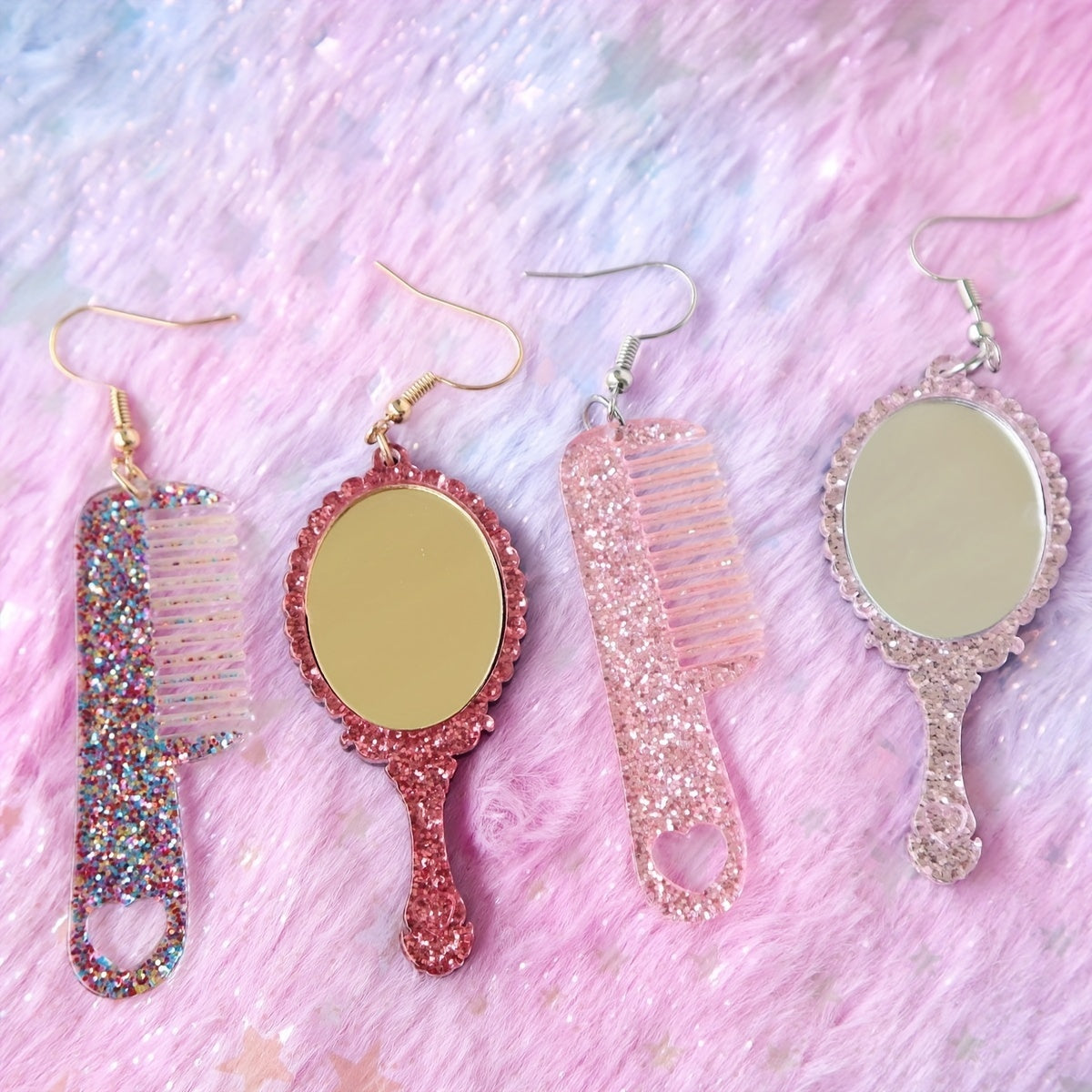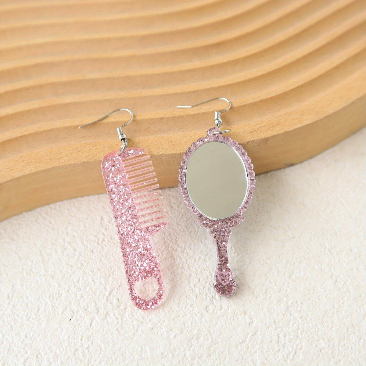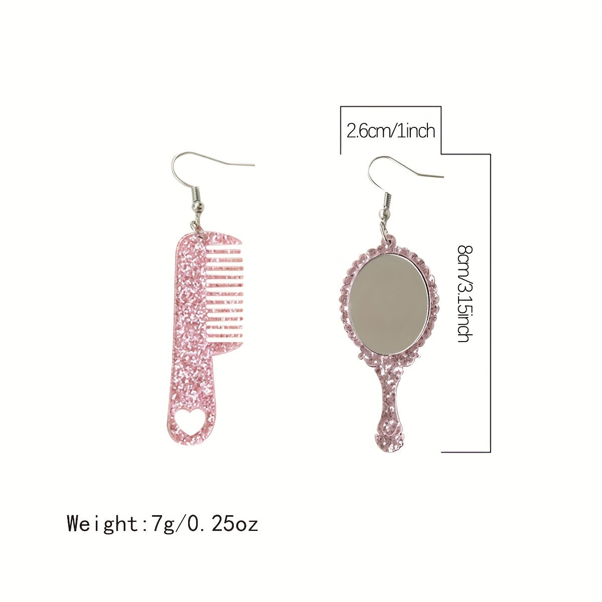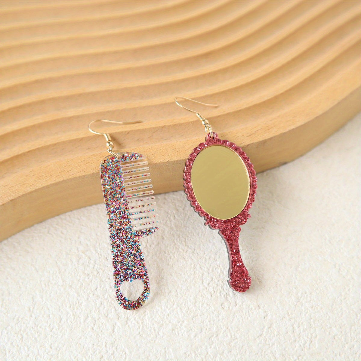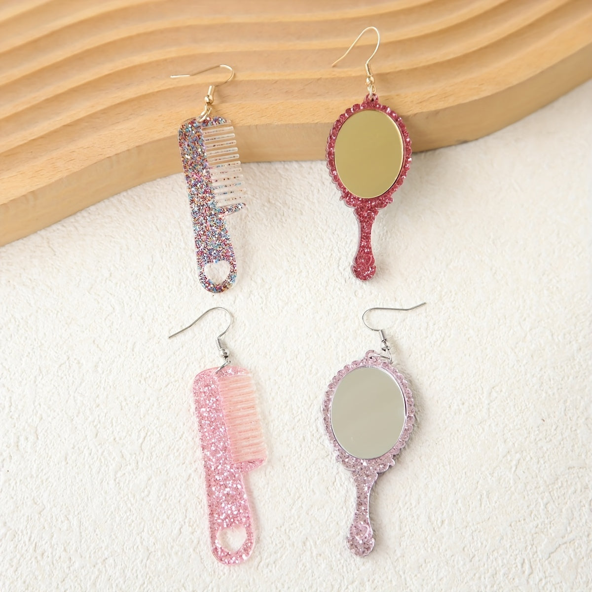 These vintage-inspired acrylic earrings feature a unique design with a makeup mirror and comb dangling charm. Perfect for daily casual wear or as a creative gift for a special woman in your life.
