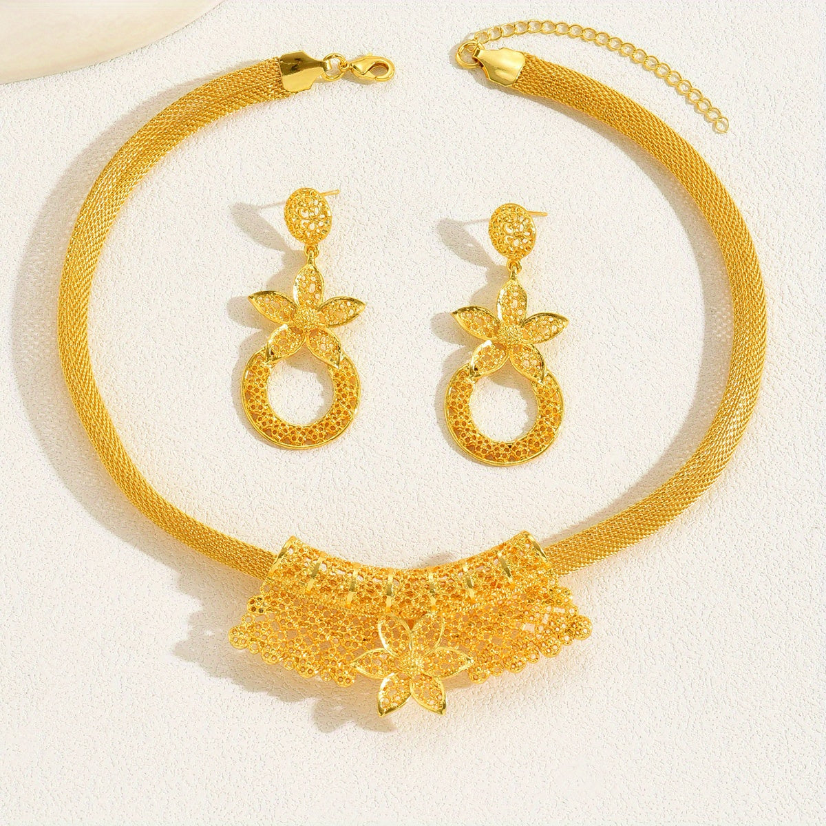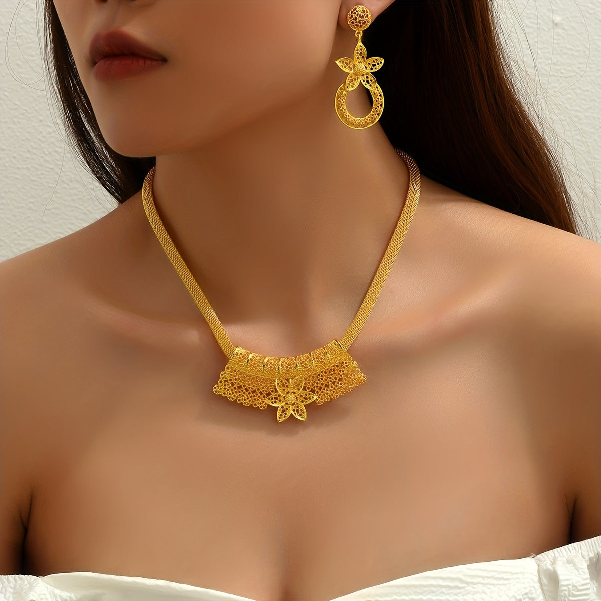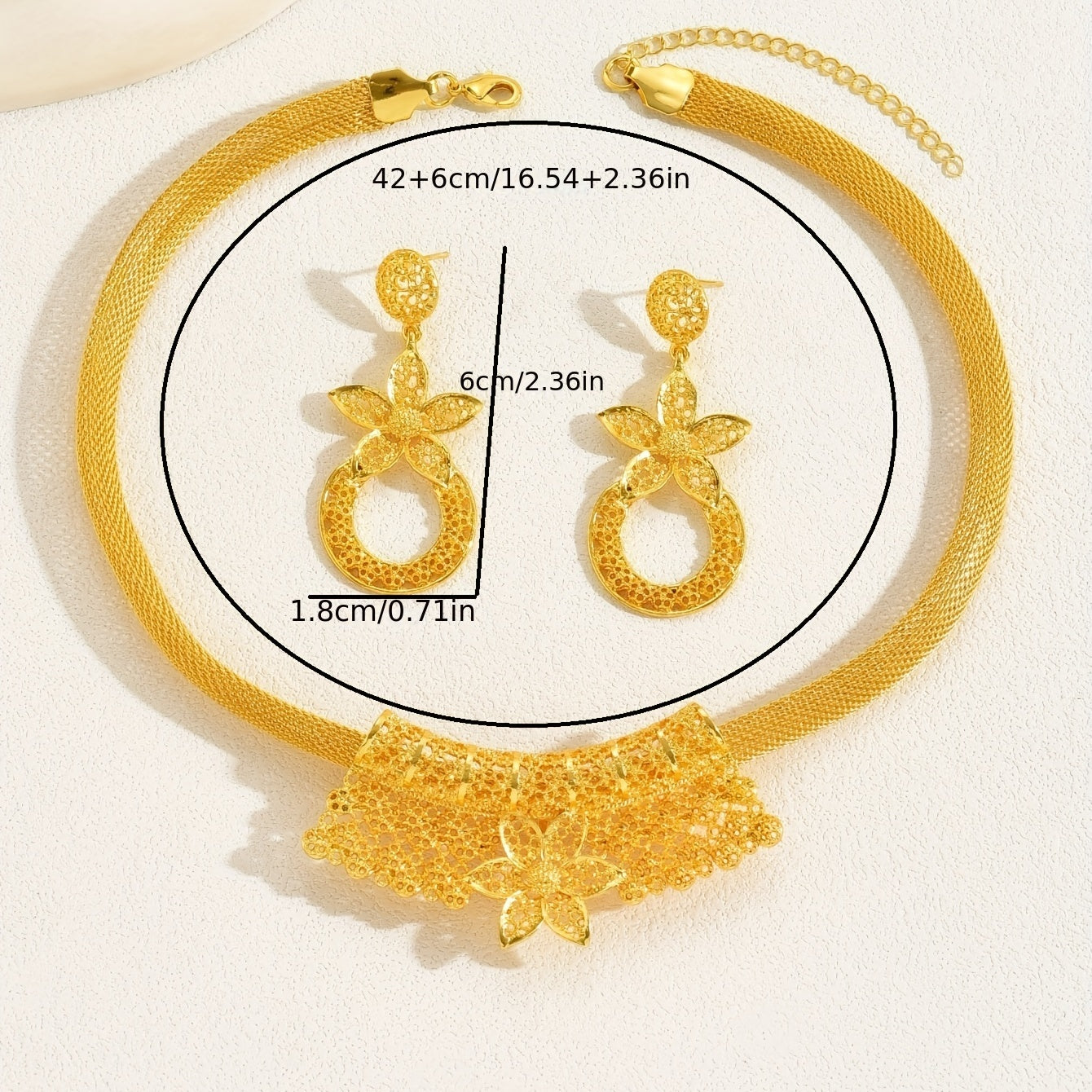 Add a touch of elegance with this exquisite 18K plated necklace and earrings set. Perfect for African bridal banquets or dinner parties.