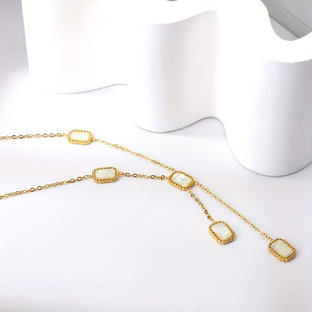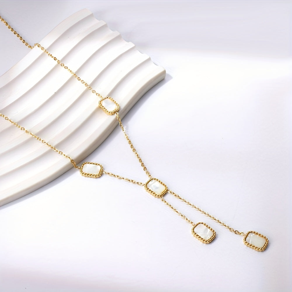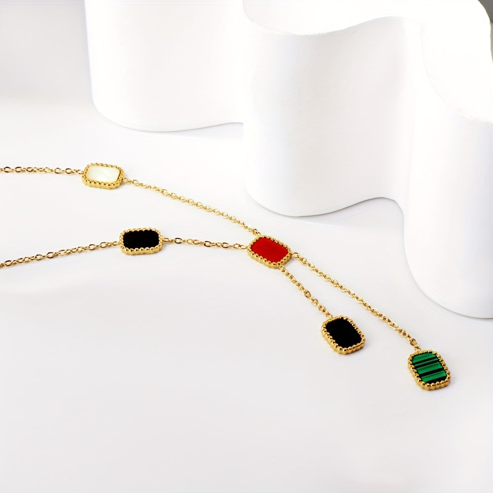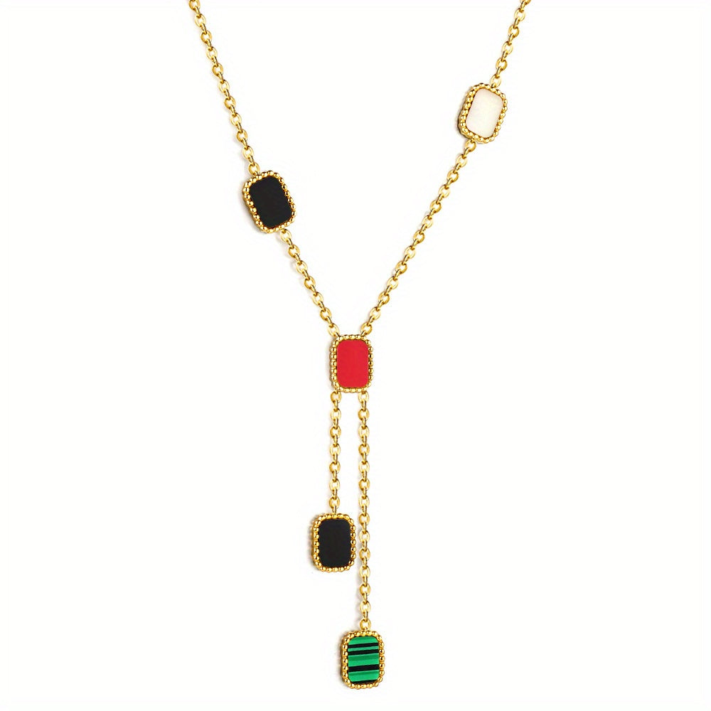 18K Plated Geometric Shape Multicolor Pendant Necklace with Tassel