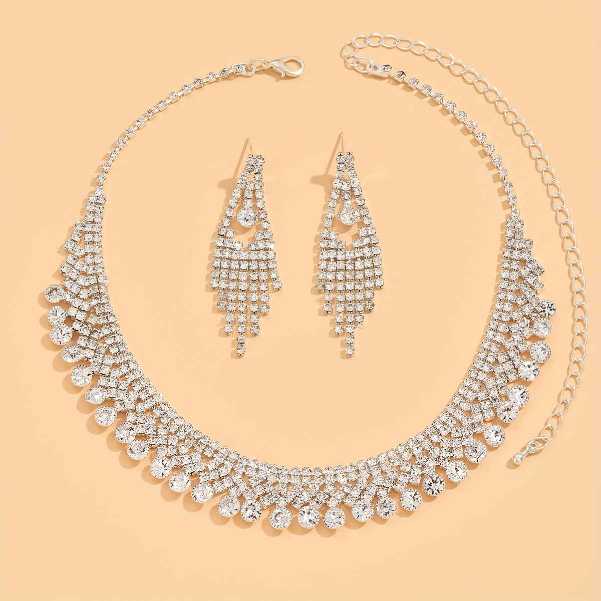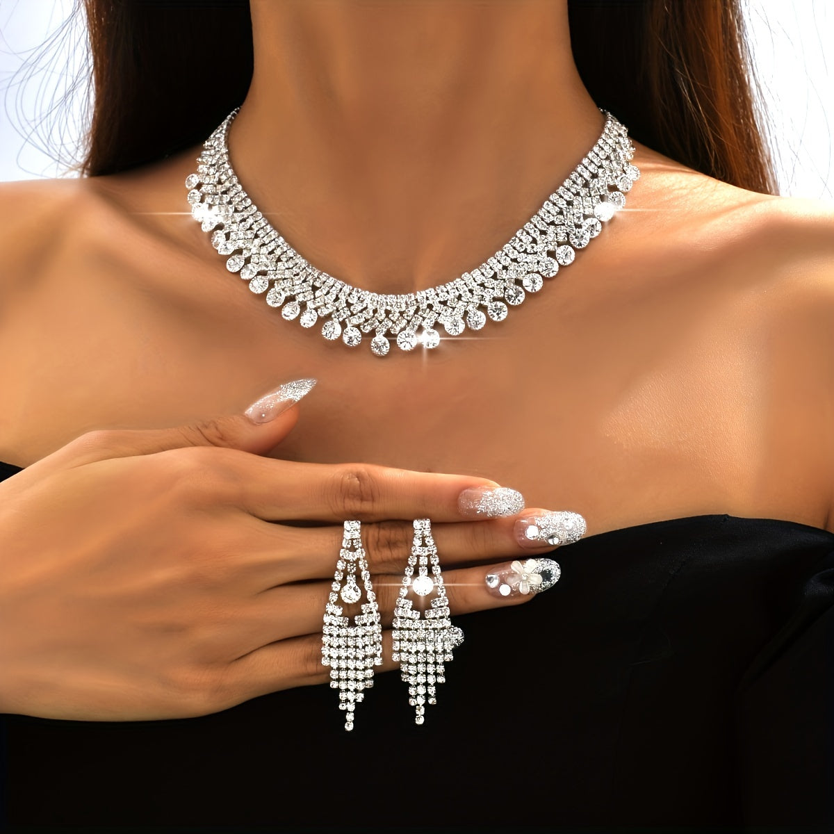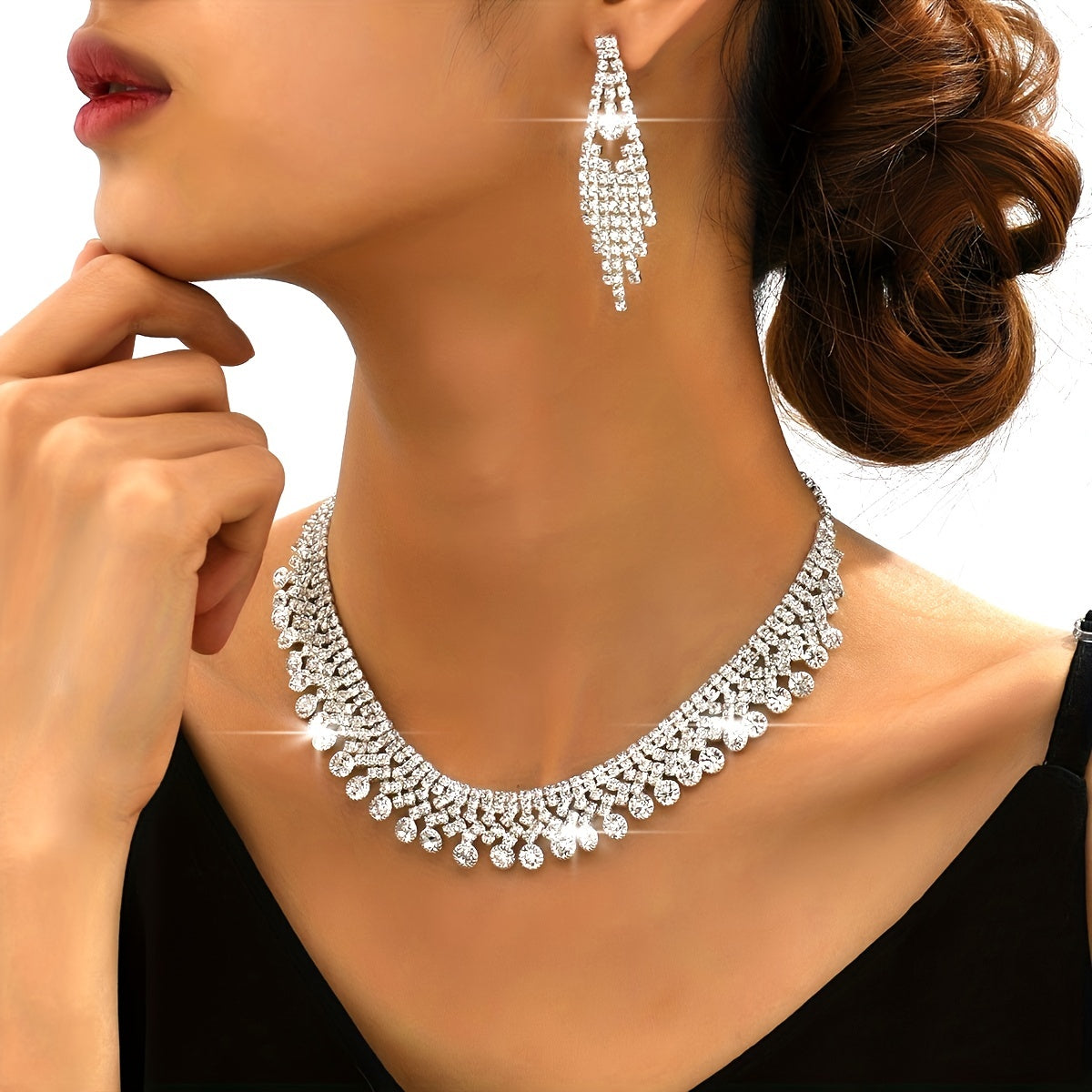 Complete your party look with this elegant 3-piece jewelry set. Silver plated with inlaid rhinestones, this dainty set is perfect for any special occasion. Makes a great birthday gift for women.