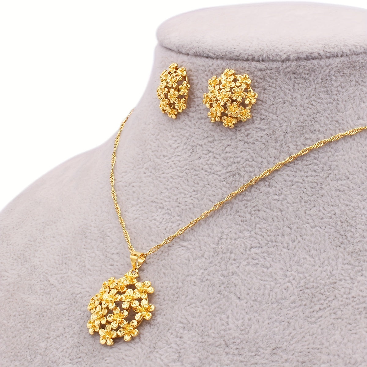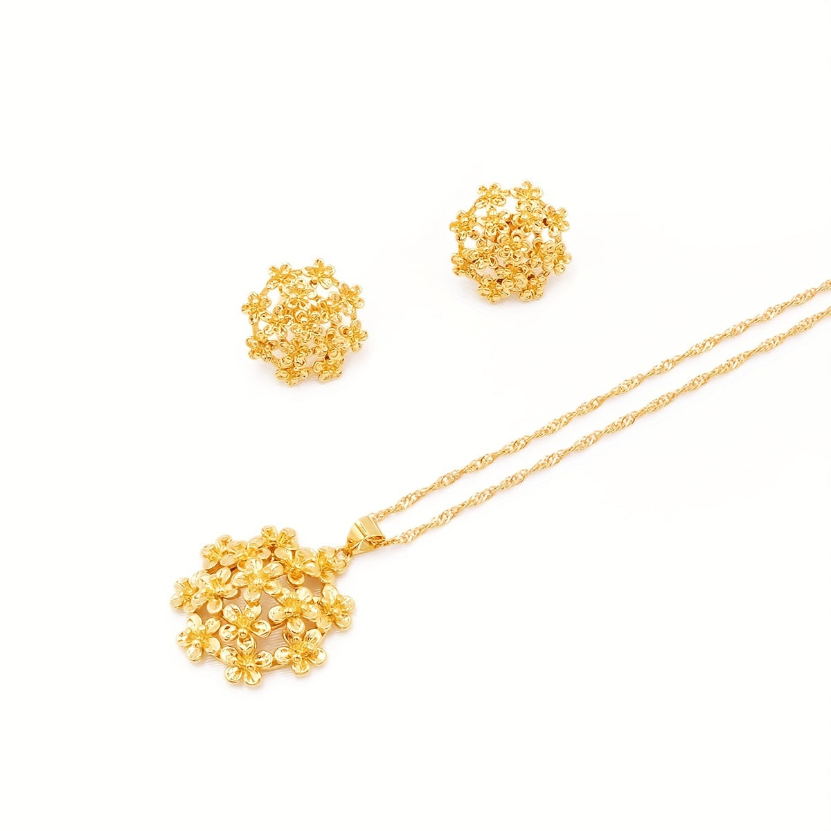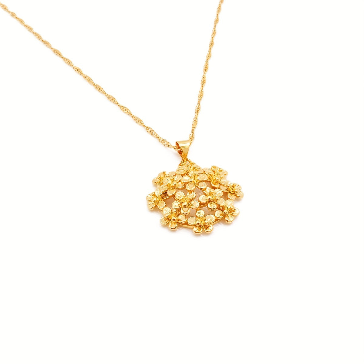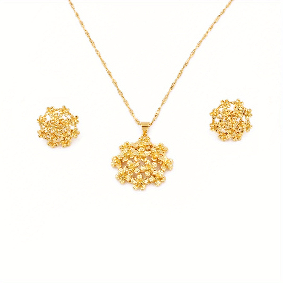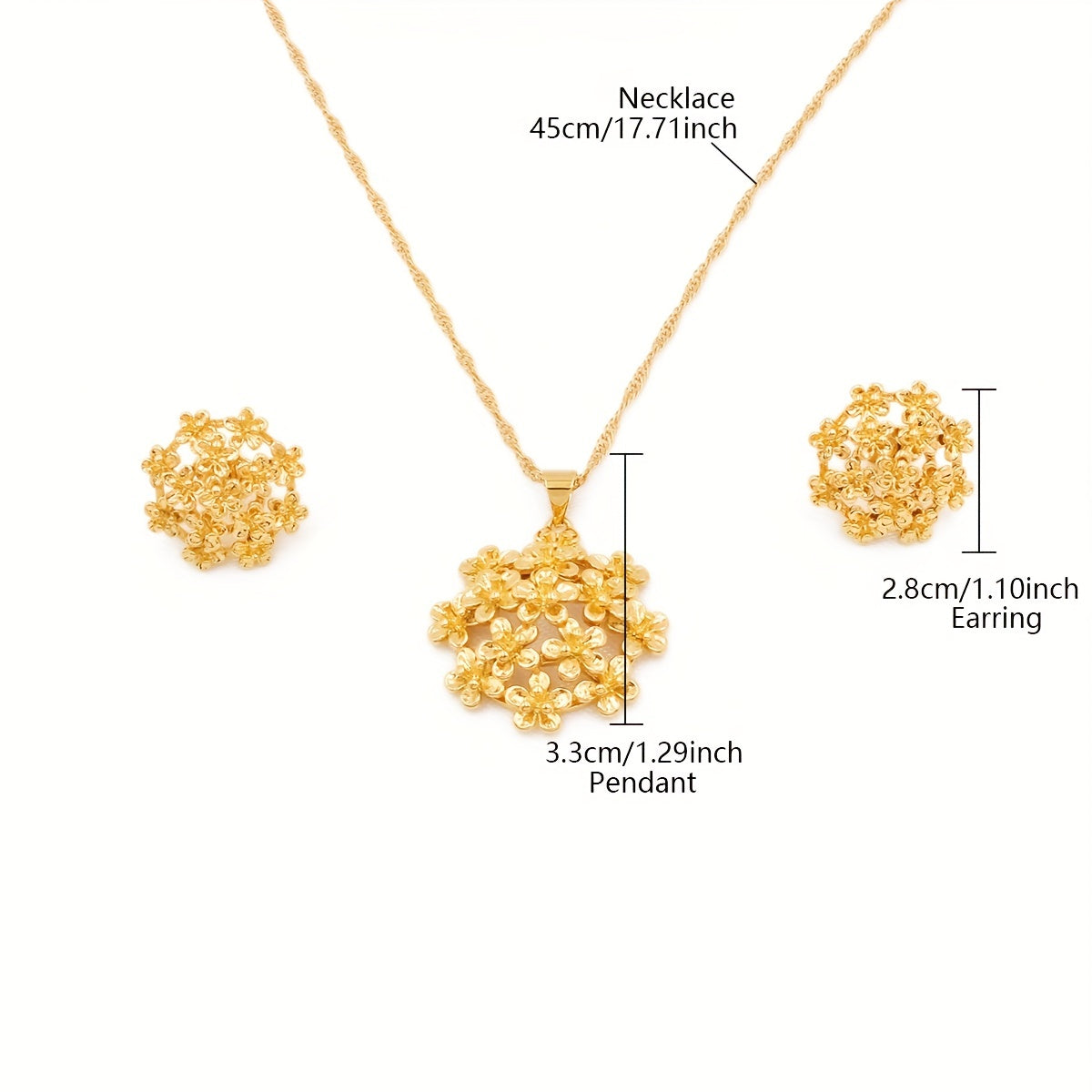 Enhance your daily outfits with this 3-piece jewelry set featuring an exaggerated design. The 18k plated flower necklace and earrings are perfect for summer vacation.