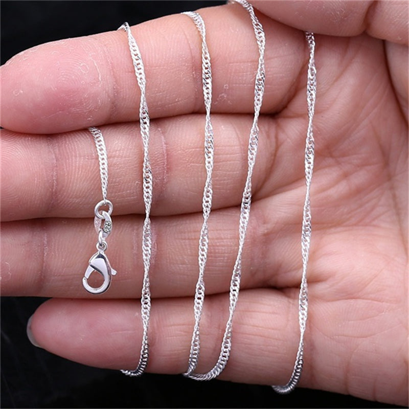 This set includes 3 water wave chain necklaces in silver plated finish. Perfect as couple jewelry or as a gift for someone special.