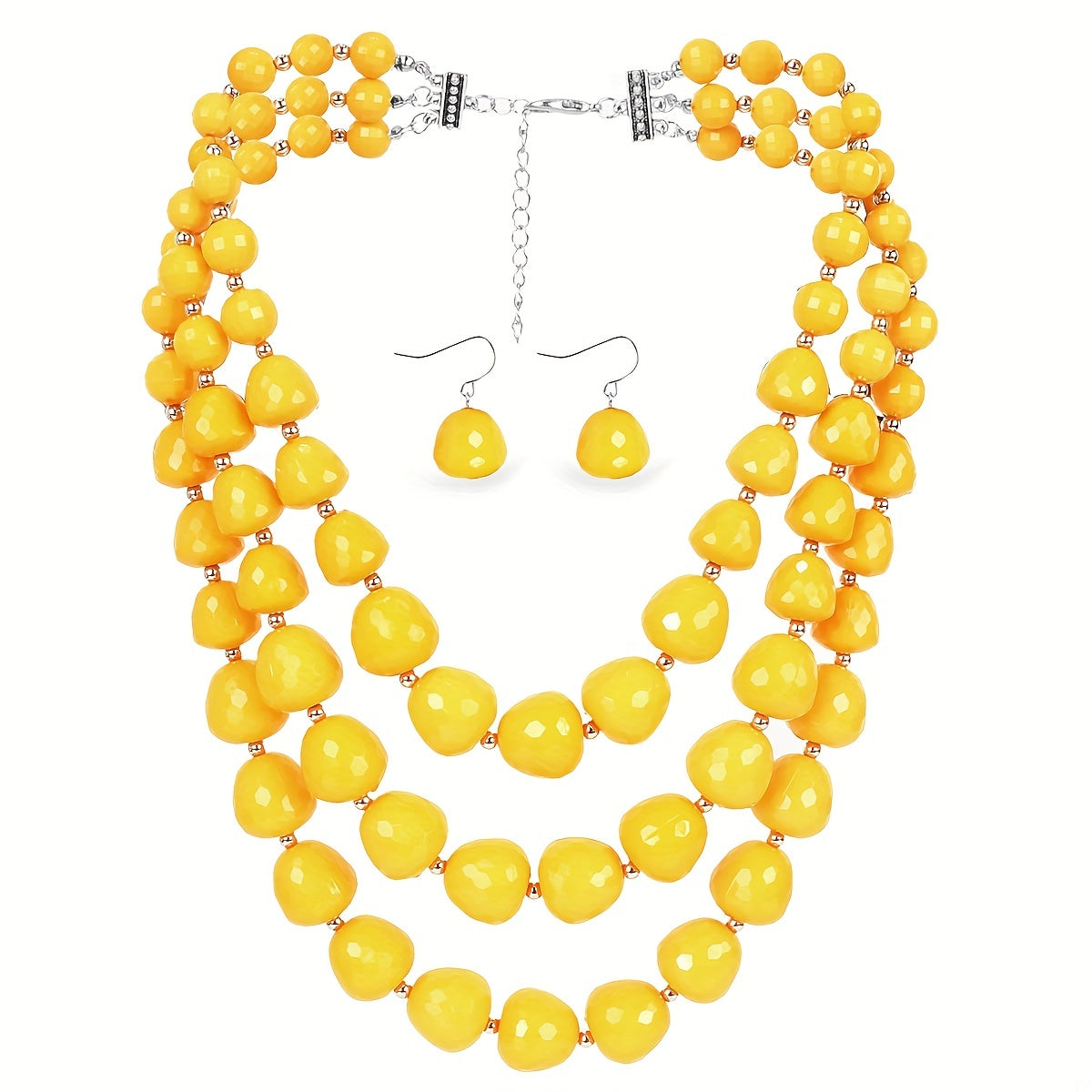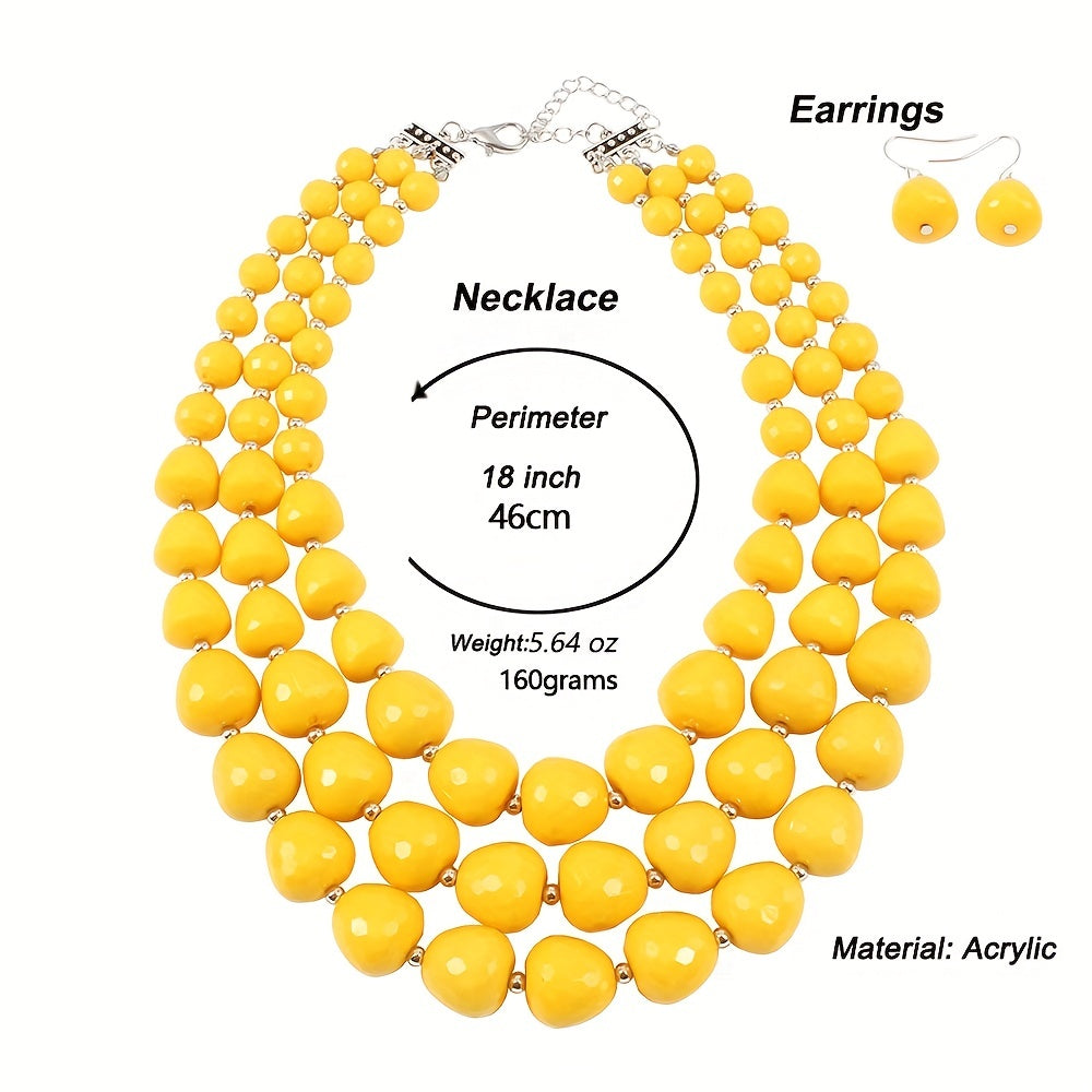 Complete your daily outfits with this boho-style jewelry set featuring gemstone earrings and necklace. Add a touch of elegance to your party looks.
