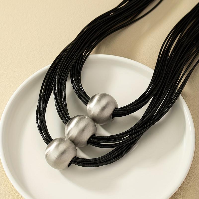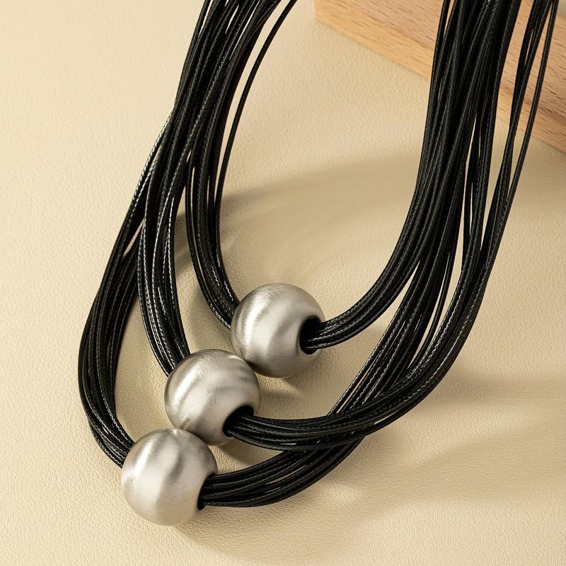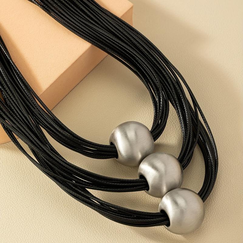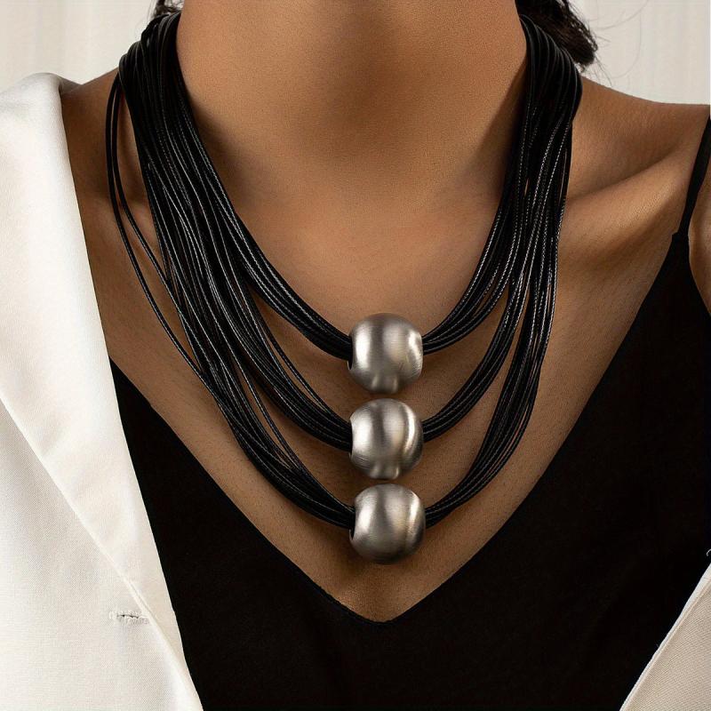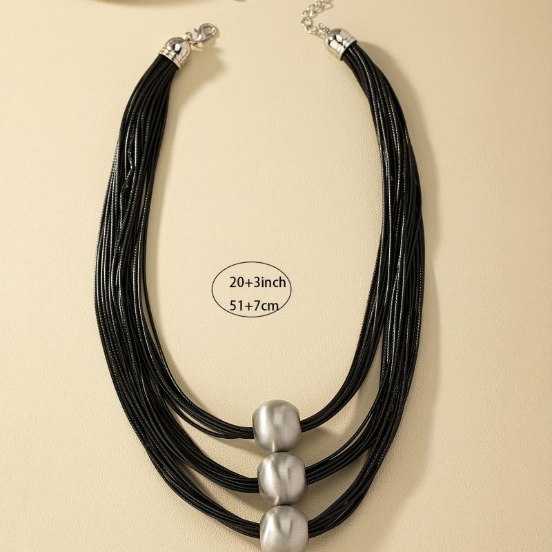 Elevate your style with this vintage boho necklace featuring three layers of exaggerated nylon ropes for a unique look.