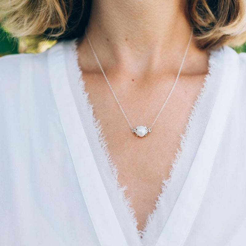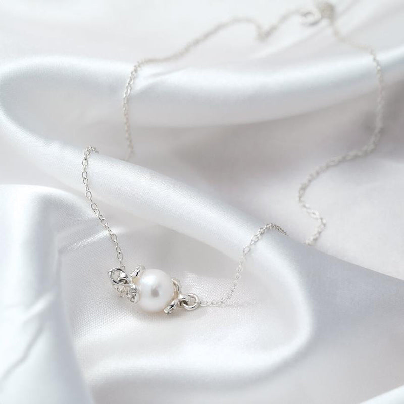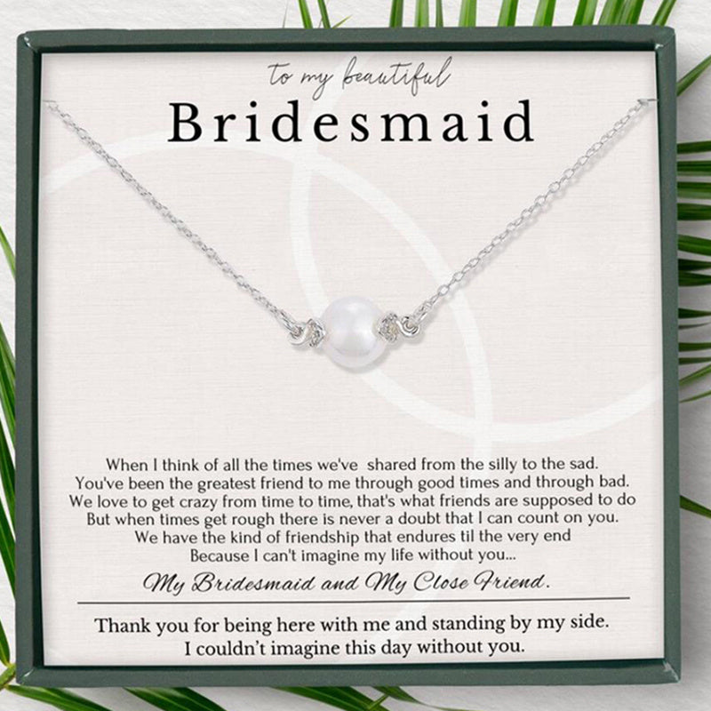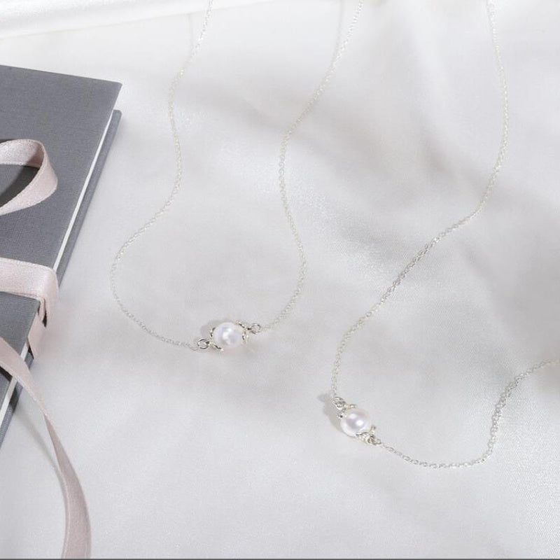 Delight your bridesmaids with this dainty pearl necklace that makes a perfect thank you gift. Featuring sterling silver, it's elegant and timeless.