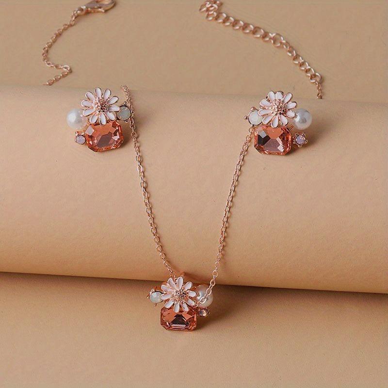 This elegant jewelry set features delicate sunflower design with faux pearls. Perfect gift for women and girls.
