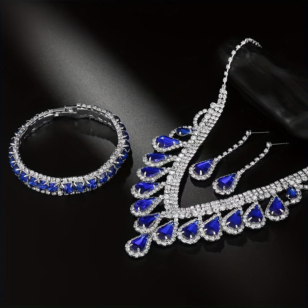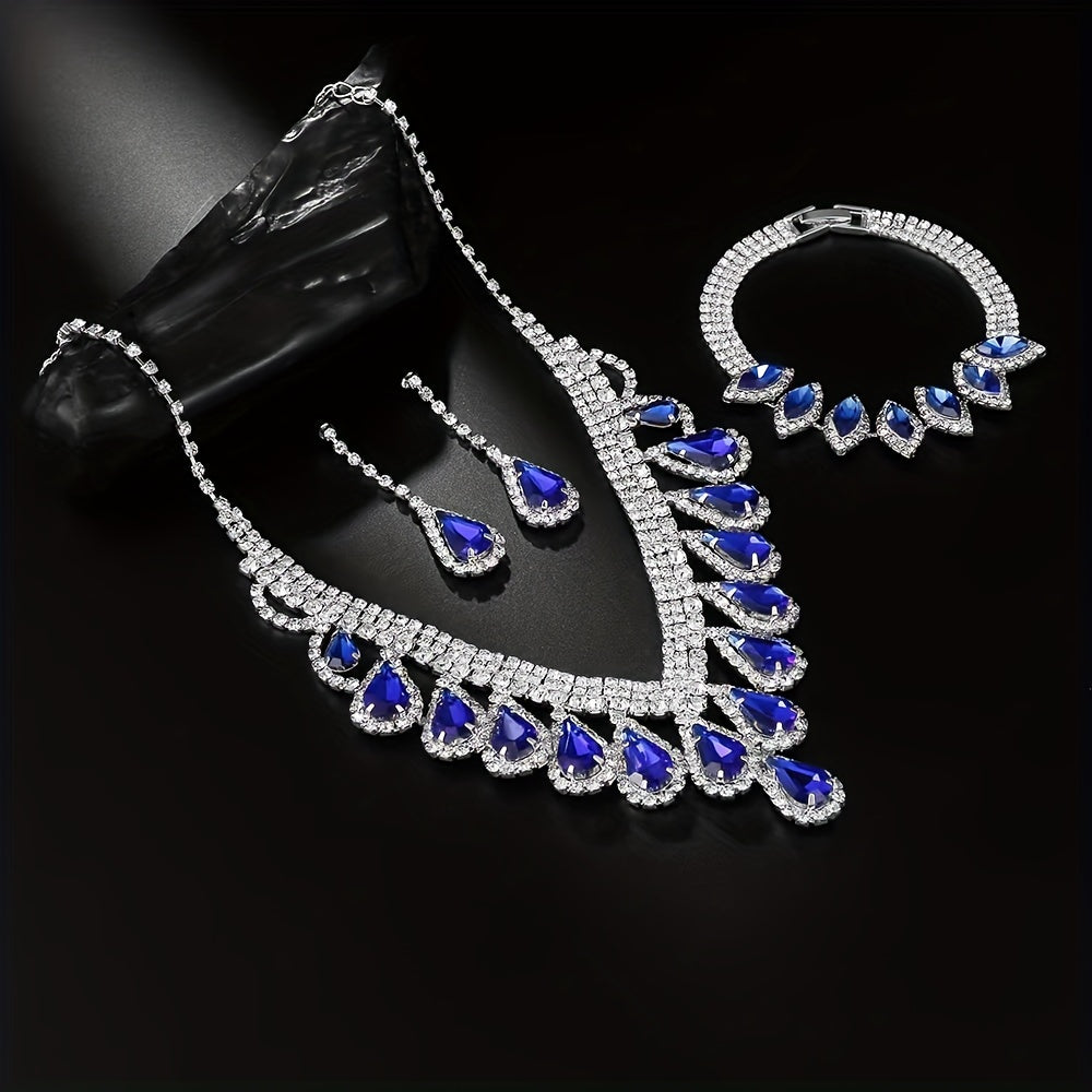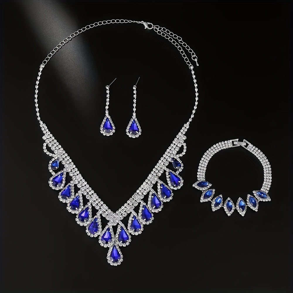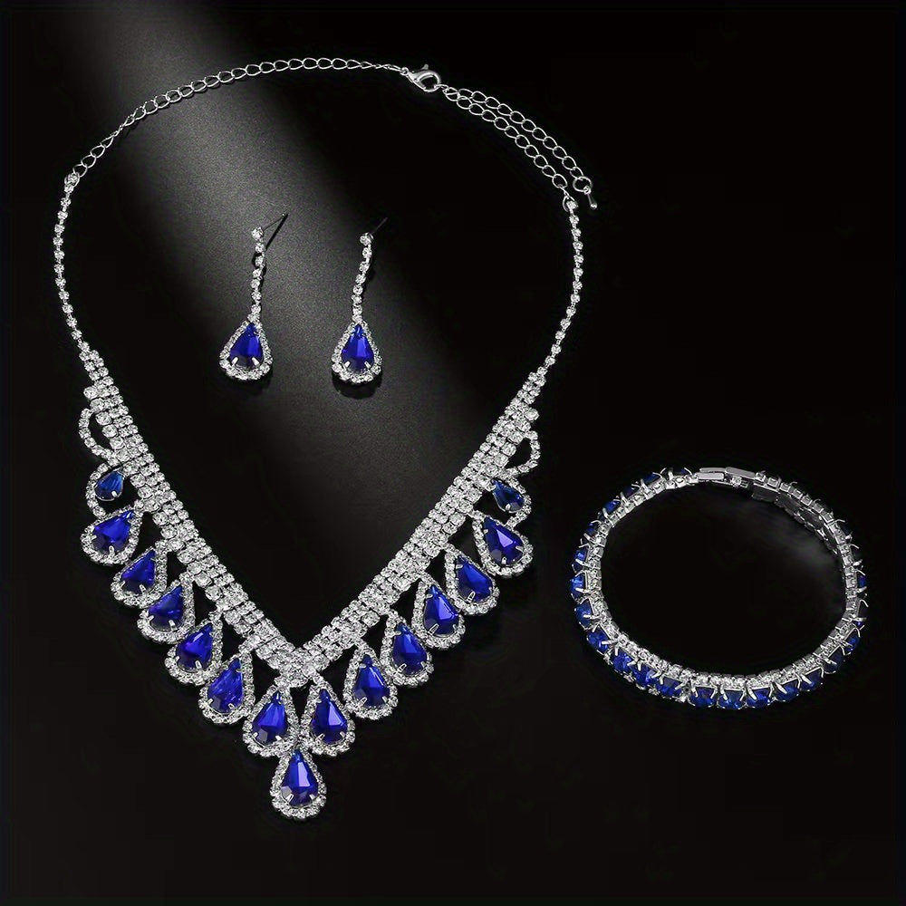 Add a touch of elegance to your outfit with this stunning crystal rhinestones necklace, earrings, and bracelet set. Perfect for weddings, parties, or special occasions.