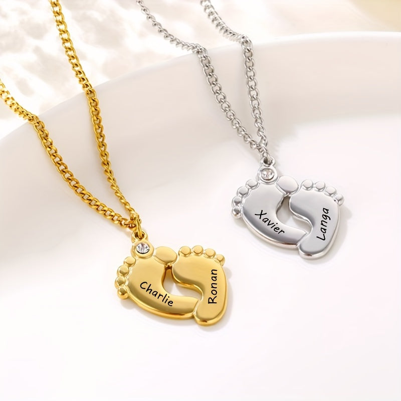 Get this personalized stainless steel necklace with zircon pendant, perfect as a holiday gift for family or friends!