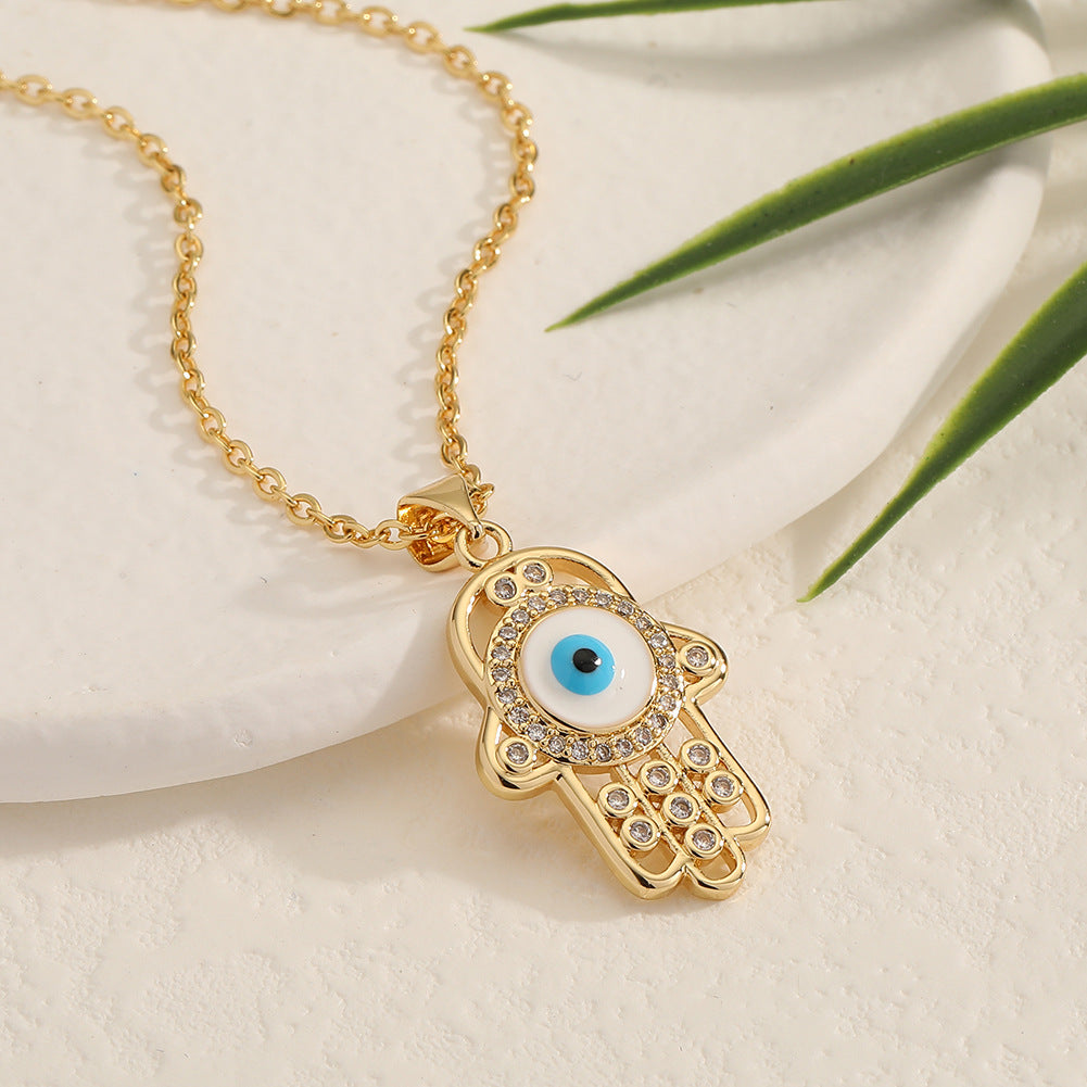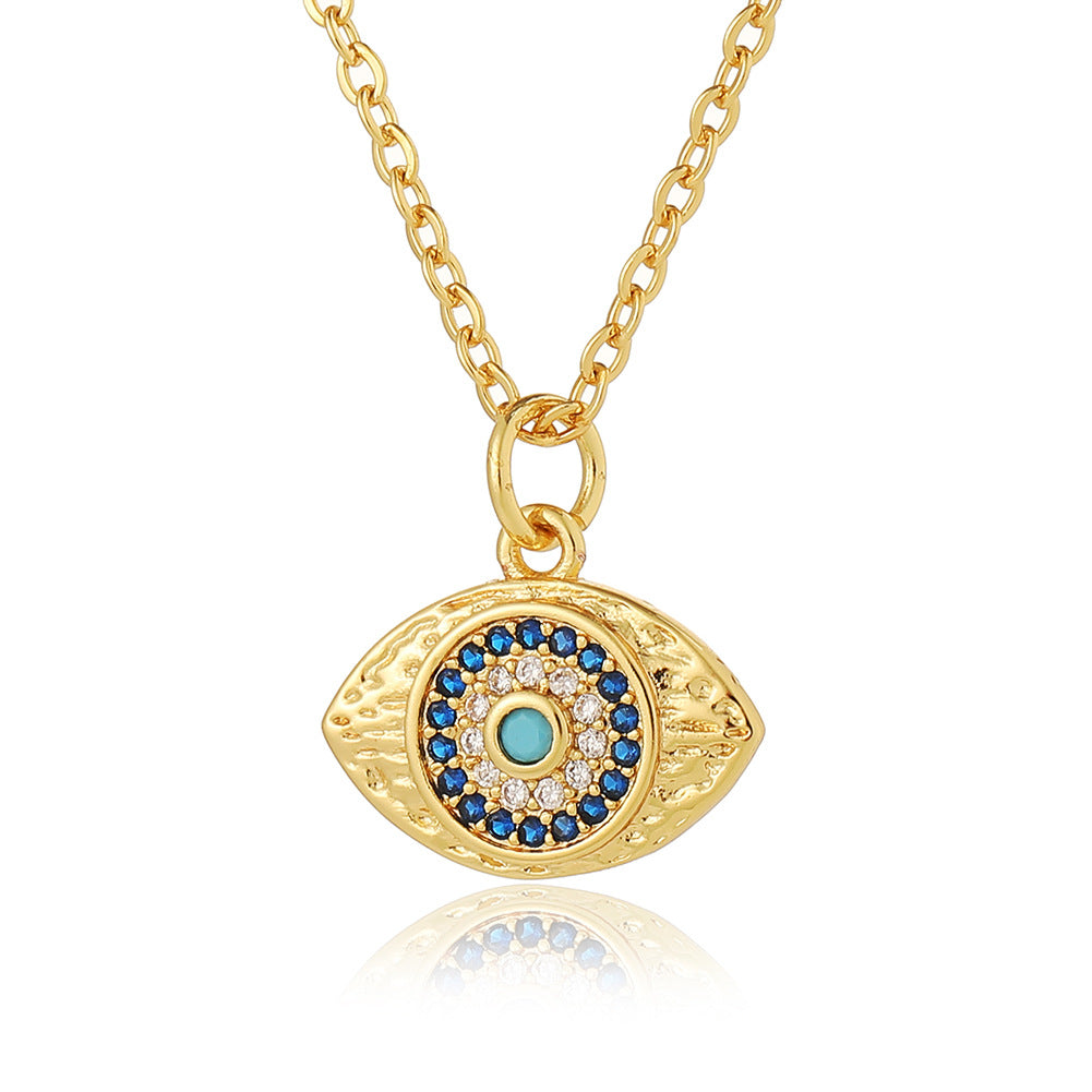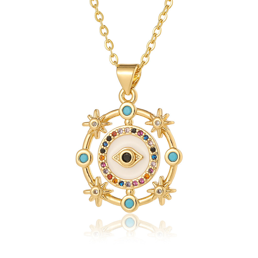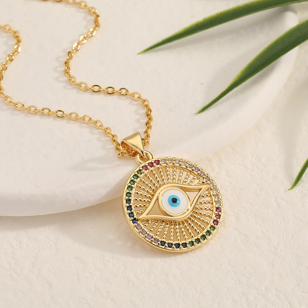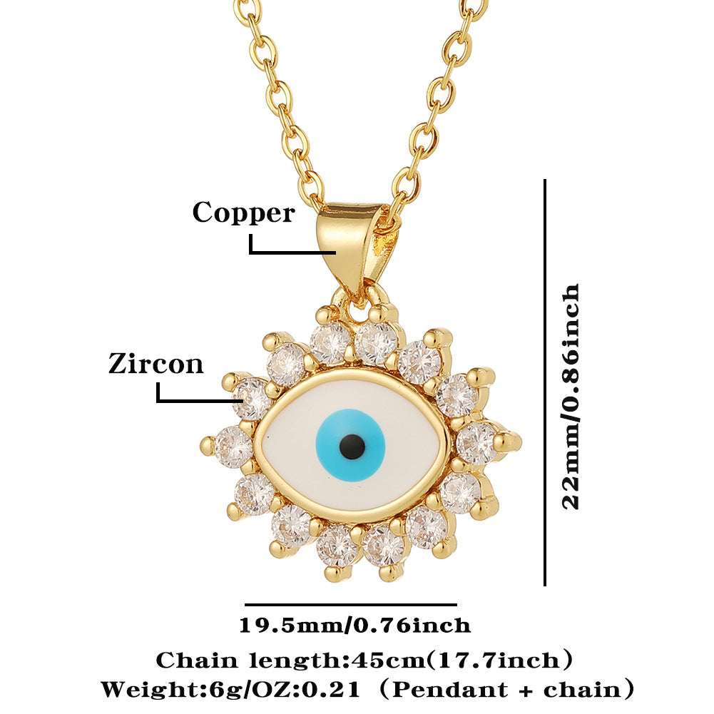 This Evil's Eye pendant necklace is a creative and personality accessory that features a stunning design with inlaid zircon stones. The necklace is made of 18K plated material, adding a touch of elegance to your look.