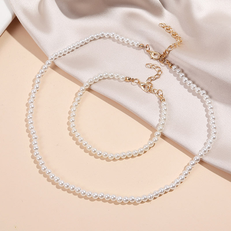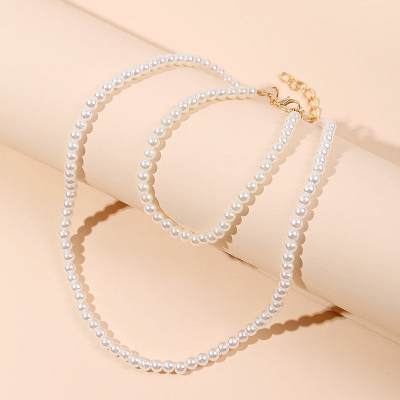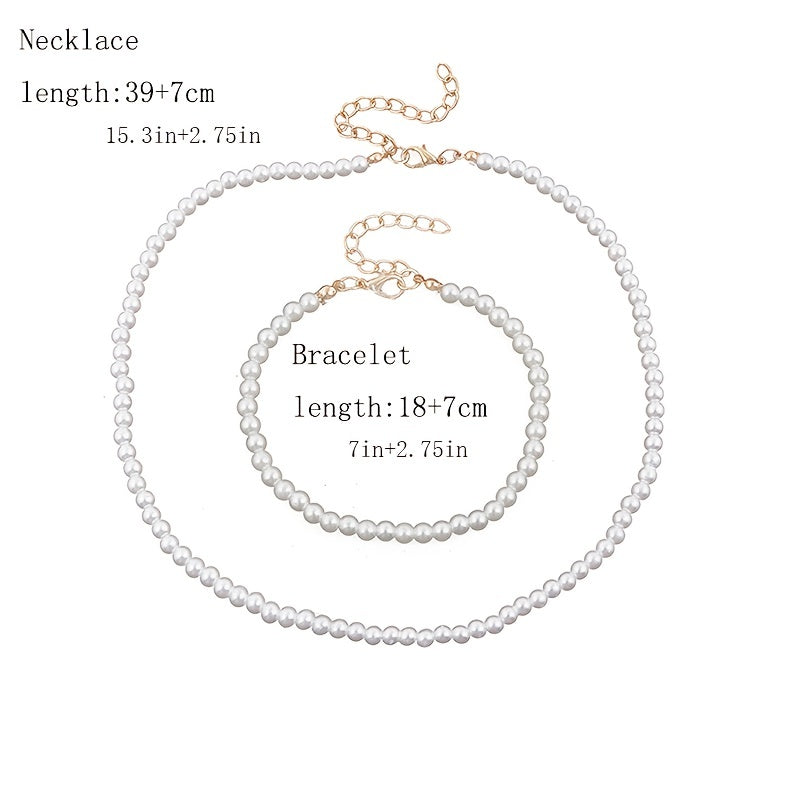 Elegant faux pearl jewelry set perfect for women and girls. Includes a necklace and bracelet.