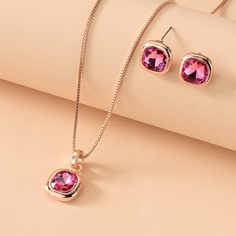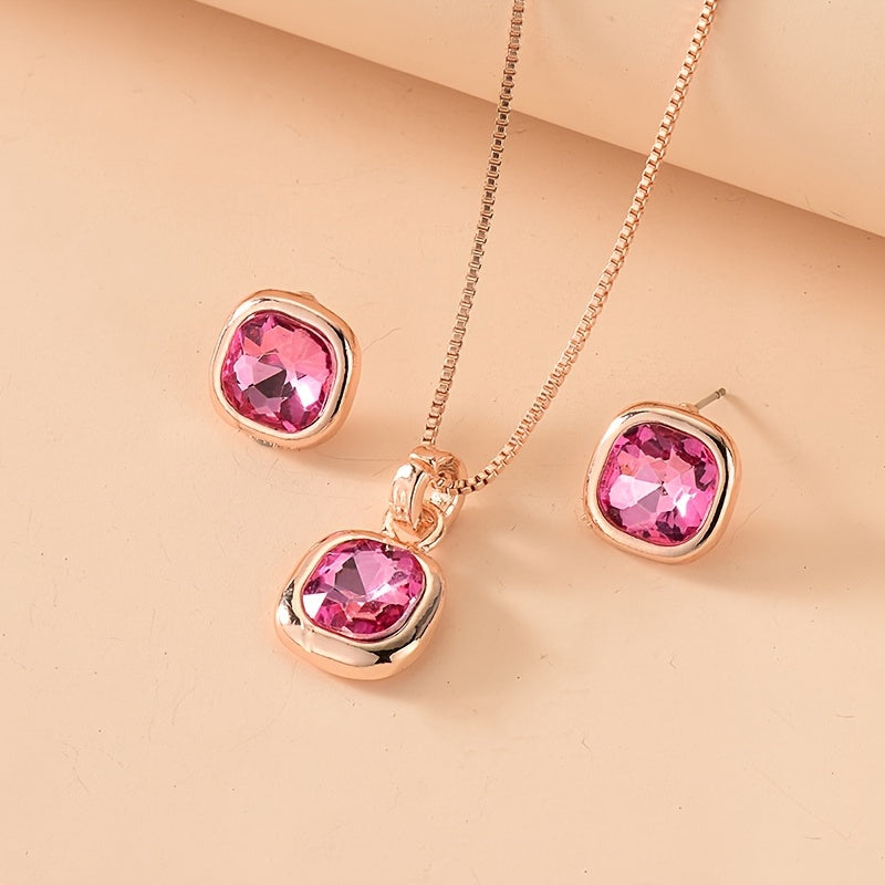 Elevate your daily clothing with this stylish geometric jewelry set. The set includes a pendant necklace and stud earrings, perfect for adding a touch of elegance to any outfit.
