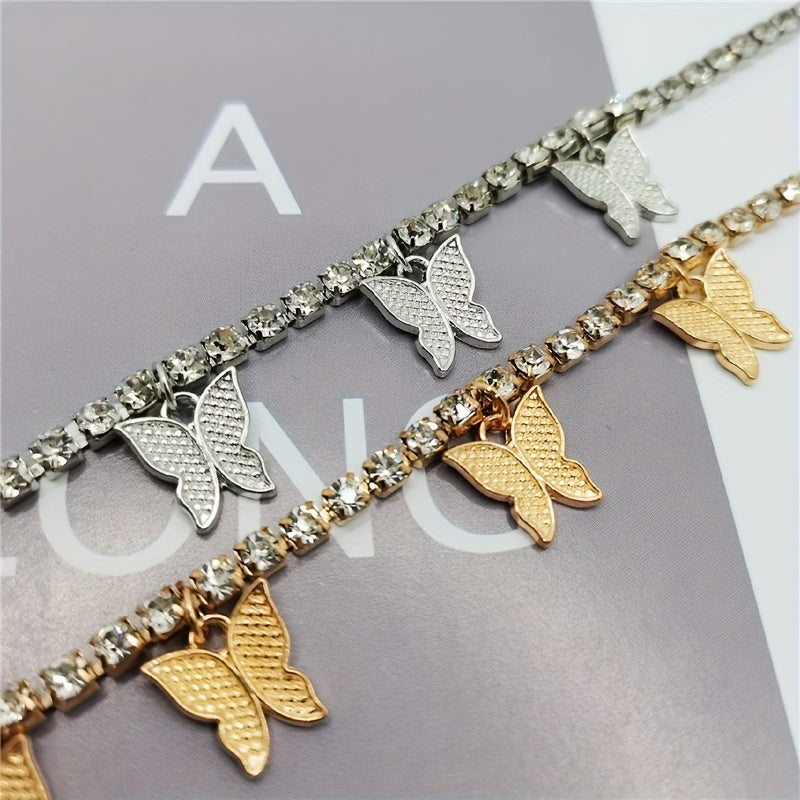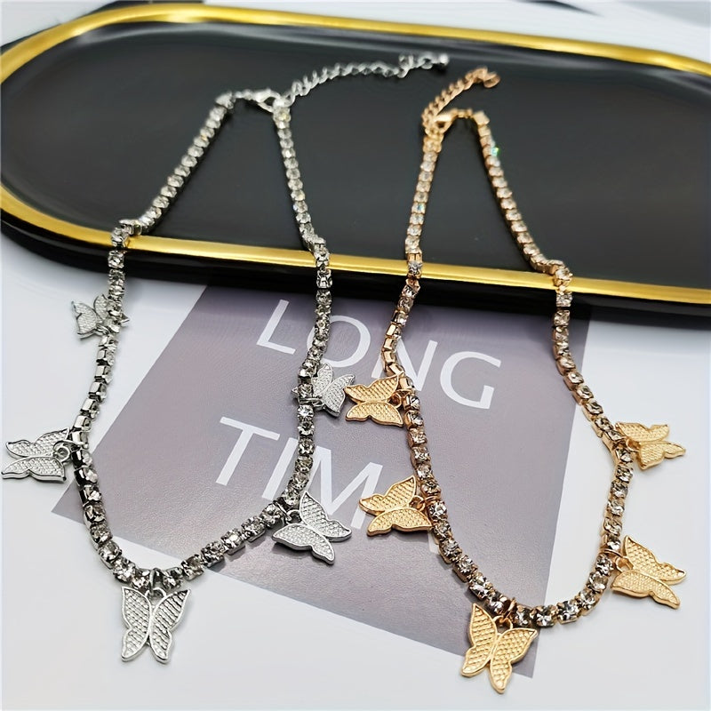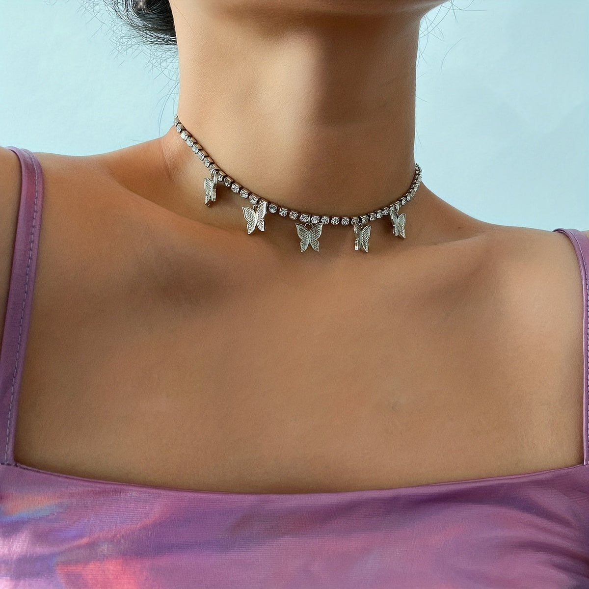 Elevate your style with this stunning 3D rhinestone necklace featuring a small butterfly pendant and tassel. Perfect for adding a touch of elegance to any outfit.
