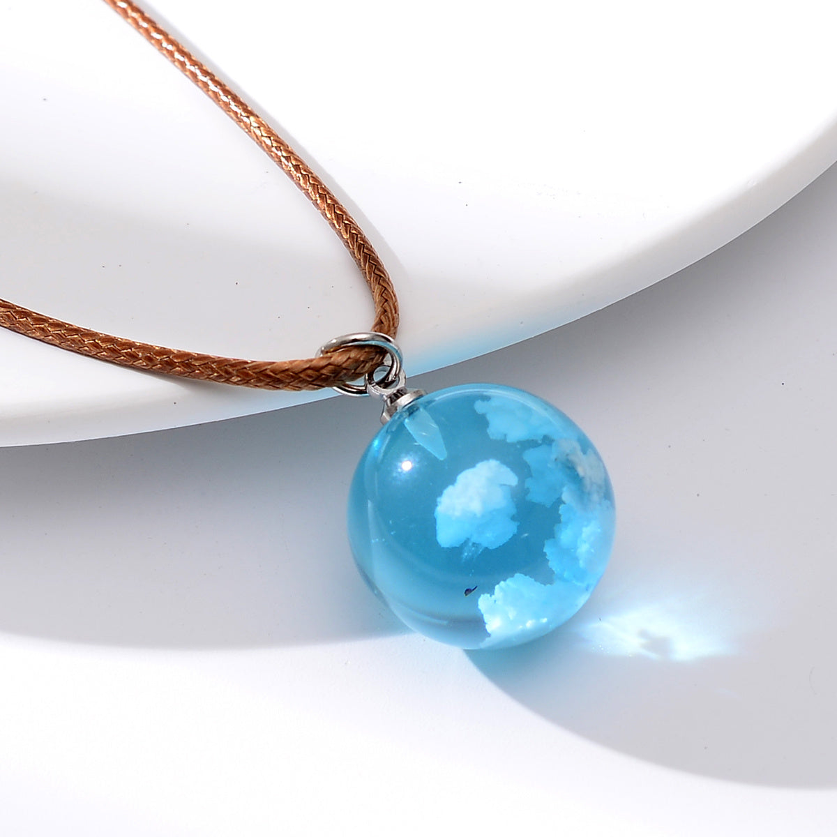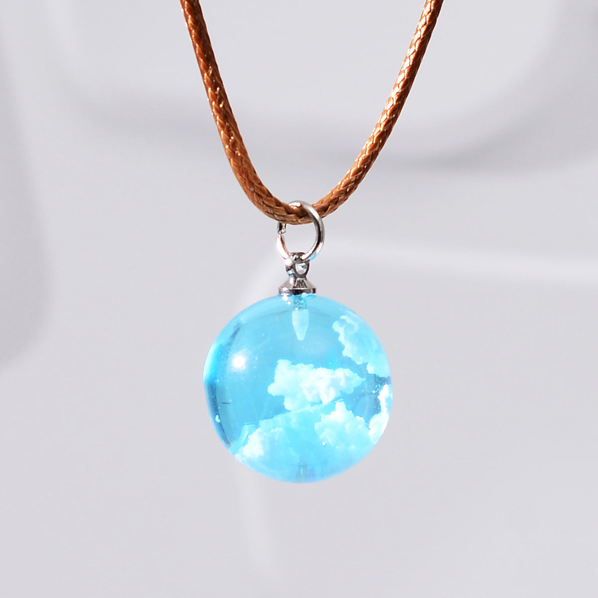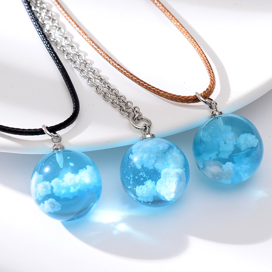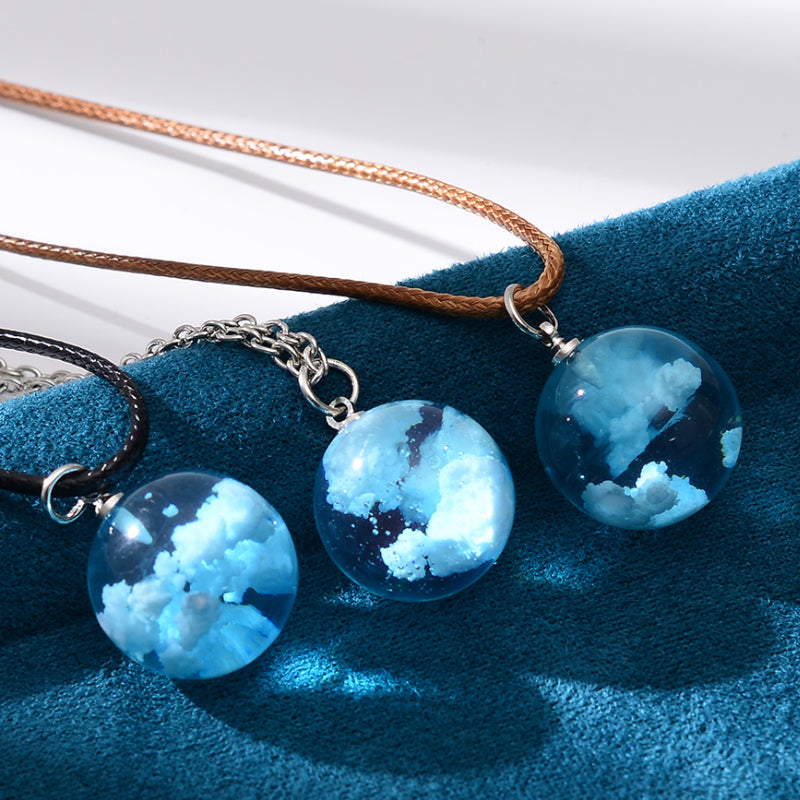 This necklace features a transparent ball pendant filled with sky clouds and a moon, perfect for adding a touch of celestial charm to your look. The nightglow effect provides a mystical ambiance.