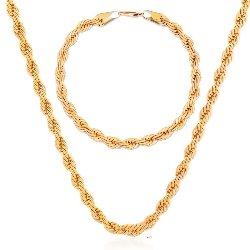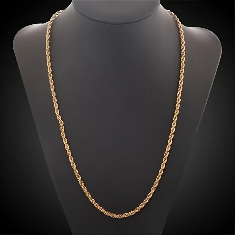 Add a touch of elegance with this stylish golden twist rope necklace, suitable for both men and women.