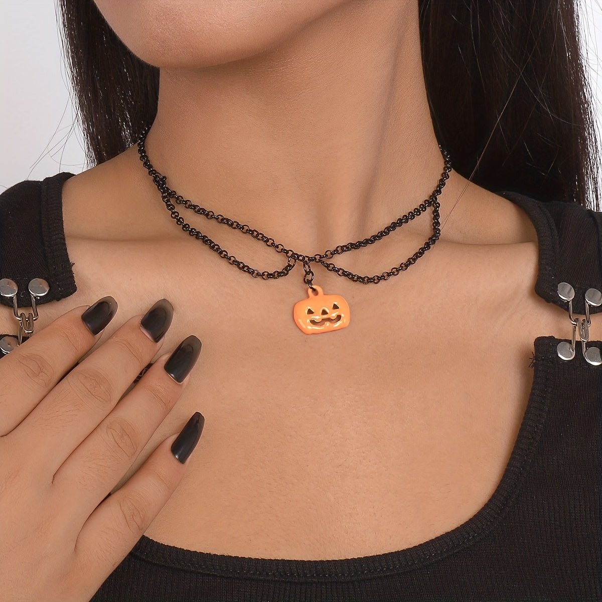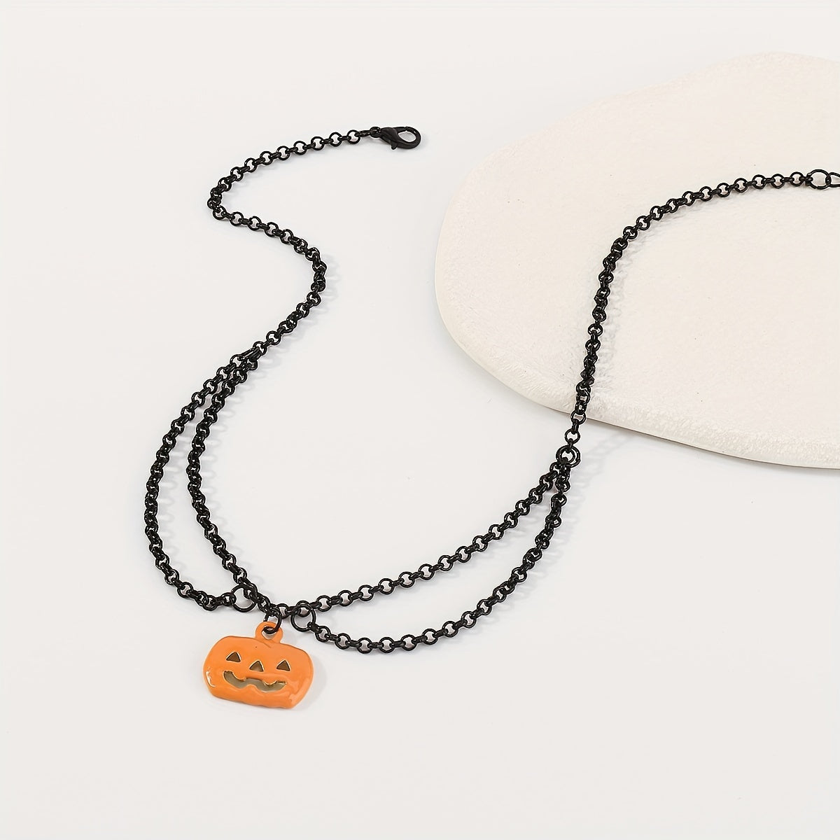 Add a spooky touch to your Halloween outfit with this Oil Drop Pumpkin Necklace. The Gothic style, double-layer design features a pumpkin pendant that is sure to make a statement.