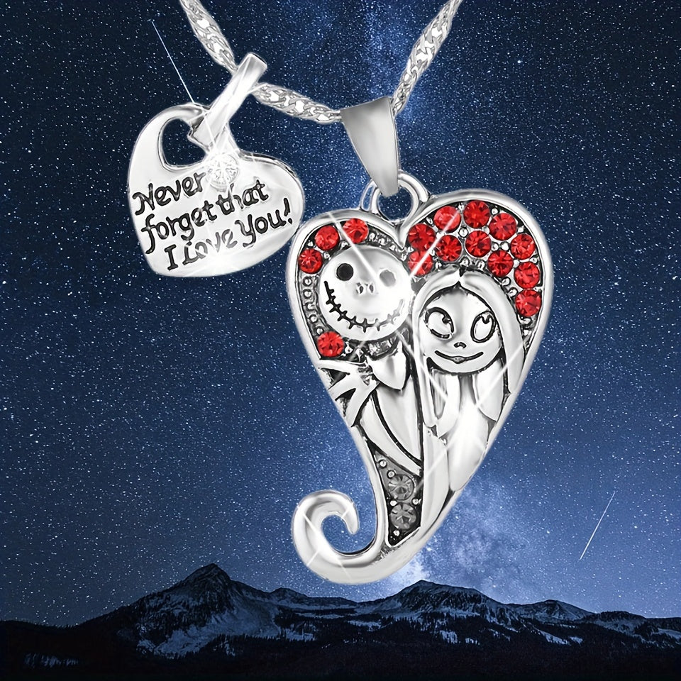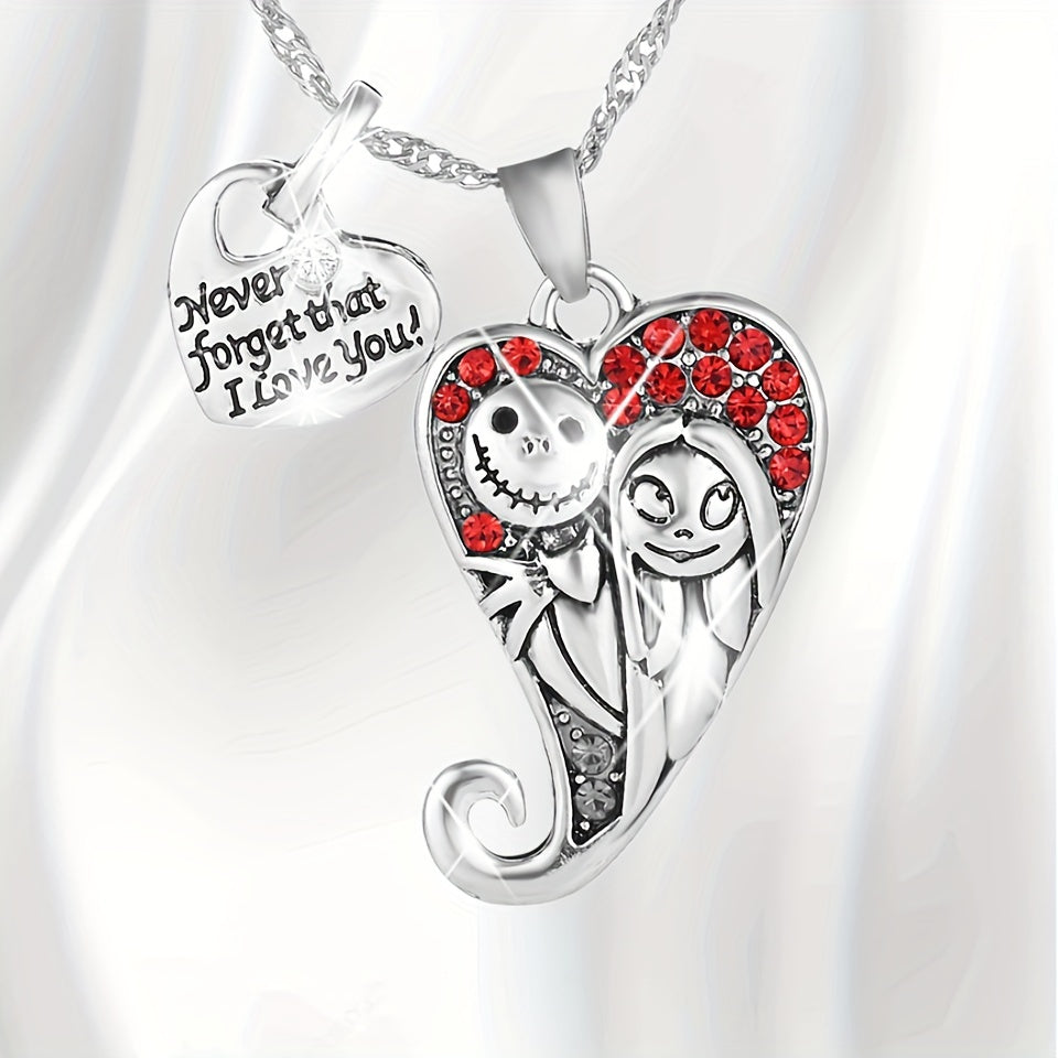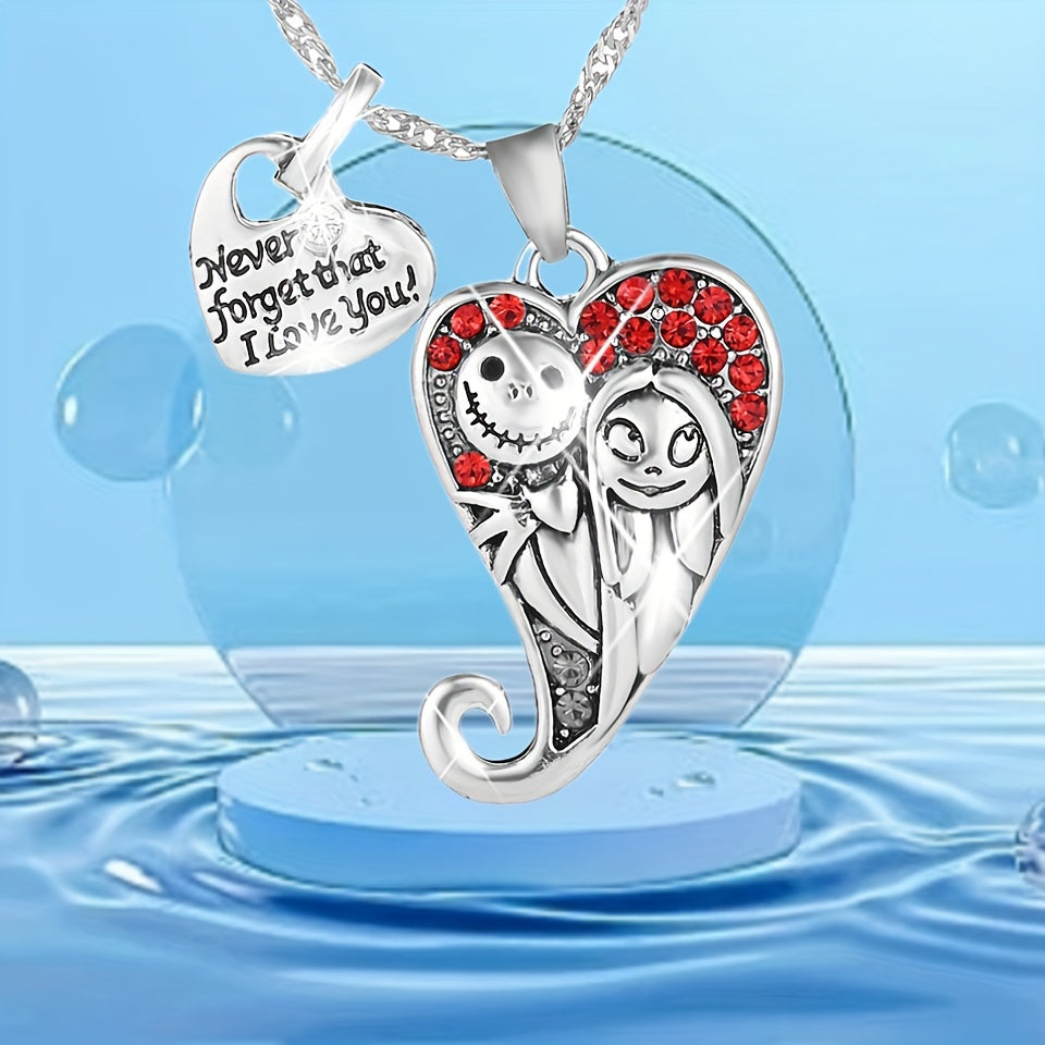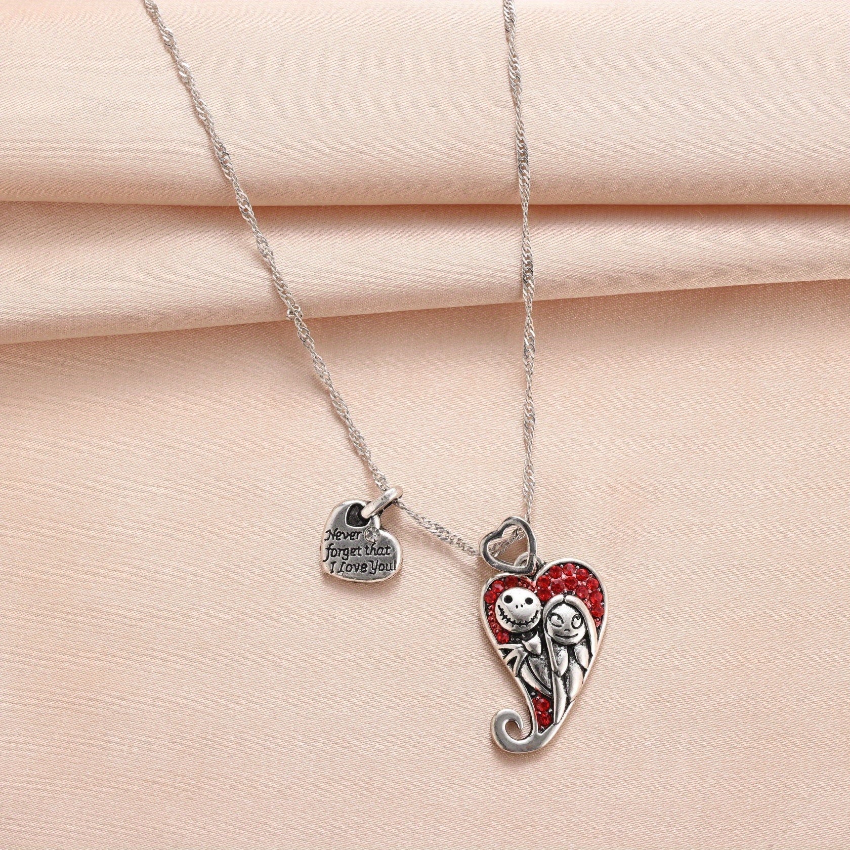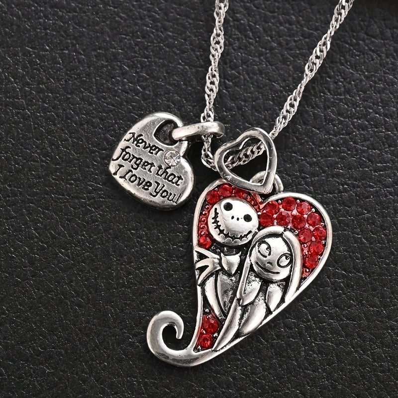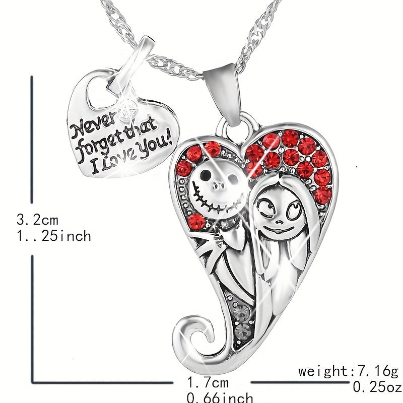 This heart pendant necklace is a perfect gift for Halloween or any occasion. It features a skull couple pendant that adds a touch of edginess and style to your outfit.