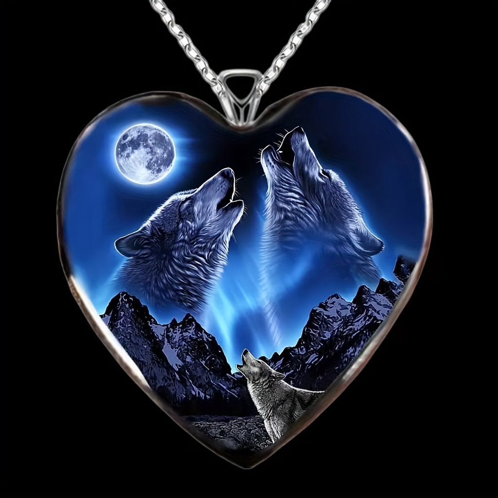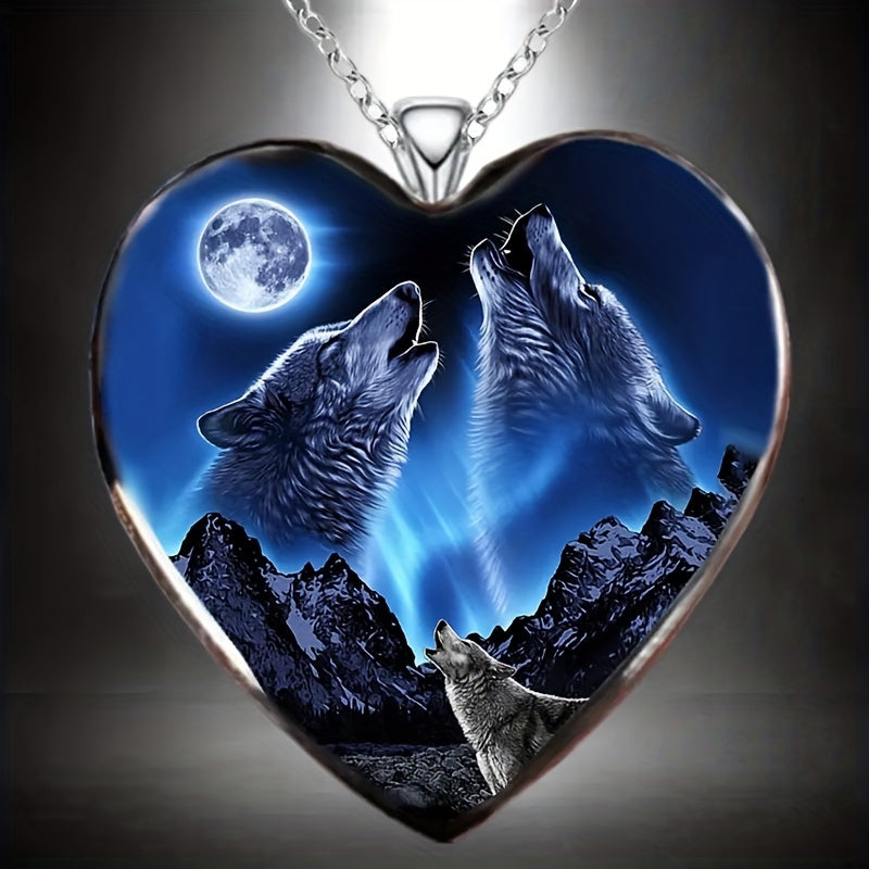 This zinc alloy pendant necklace features a creative heart wolf design, perfect for men or women. Ideal for parties, Thanksgiving, Christmas, birthdays, or as a gift for friends.