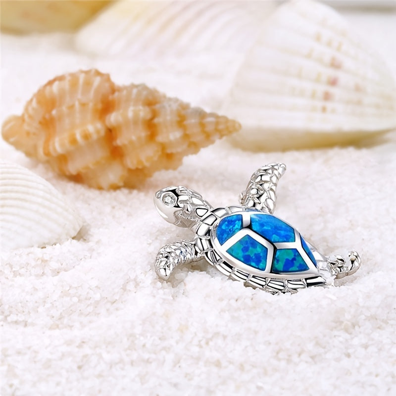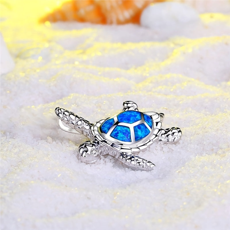 This stylish necklace features a silver turtle charm, perfect for holiday wear.
