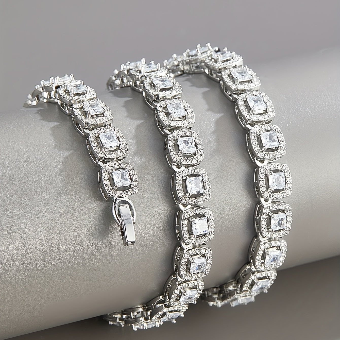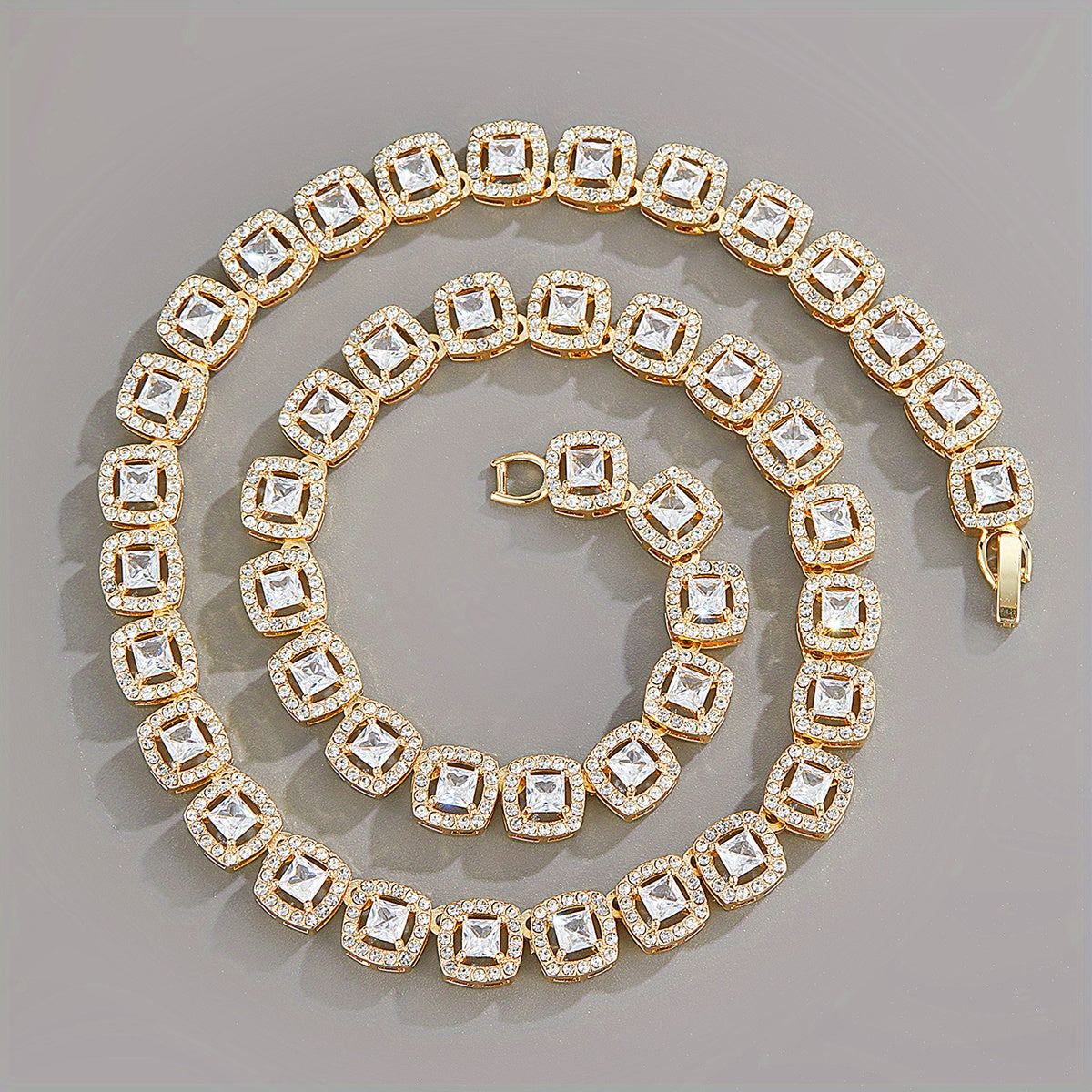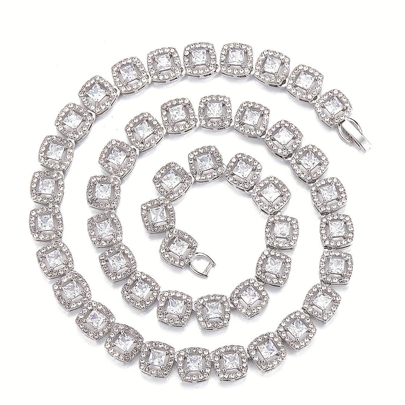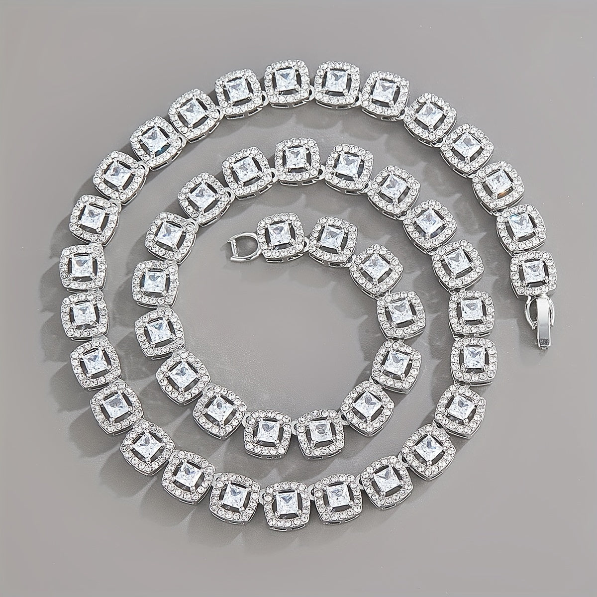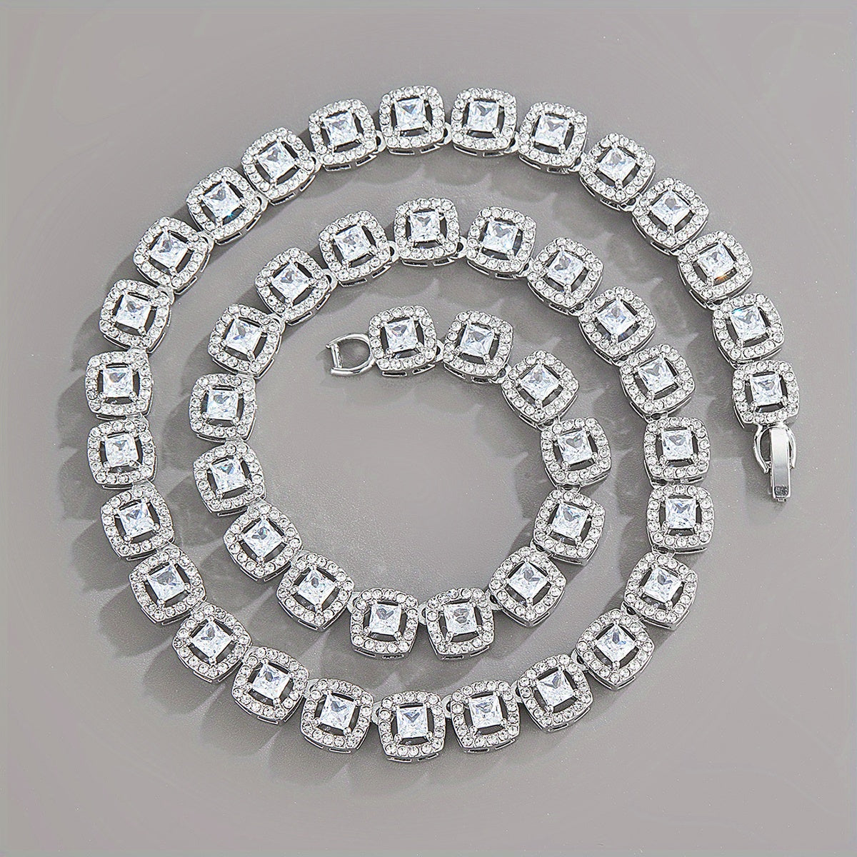 This hollowed out tennis chain necklace features sparkling cubic zirconia rhinestones, making it a perfect gift for both men and women.