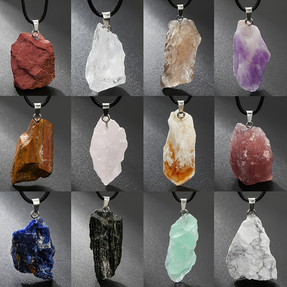 Embrace the raw beauty of nature with this natural stone pendant necklace. Each pendant features an irregularly shaped crystal gemstone, making it a unique and stylish accessory for men.