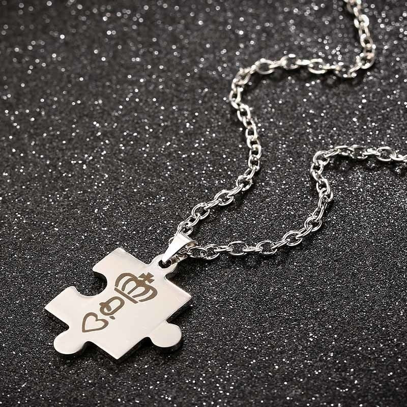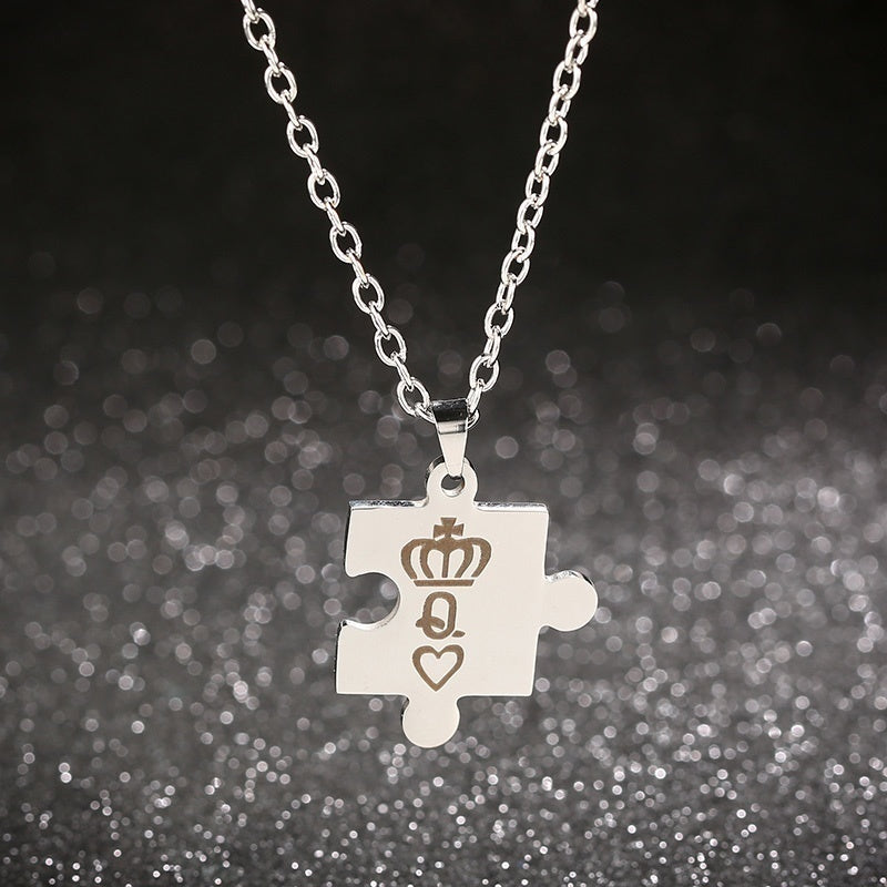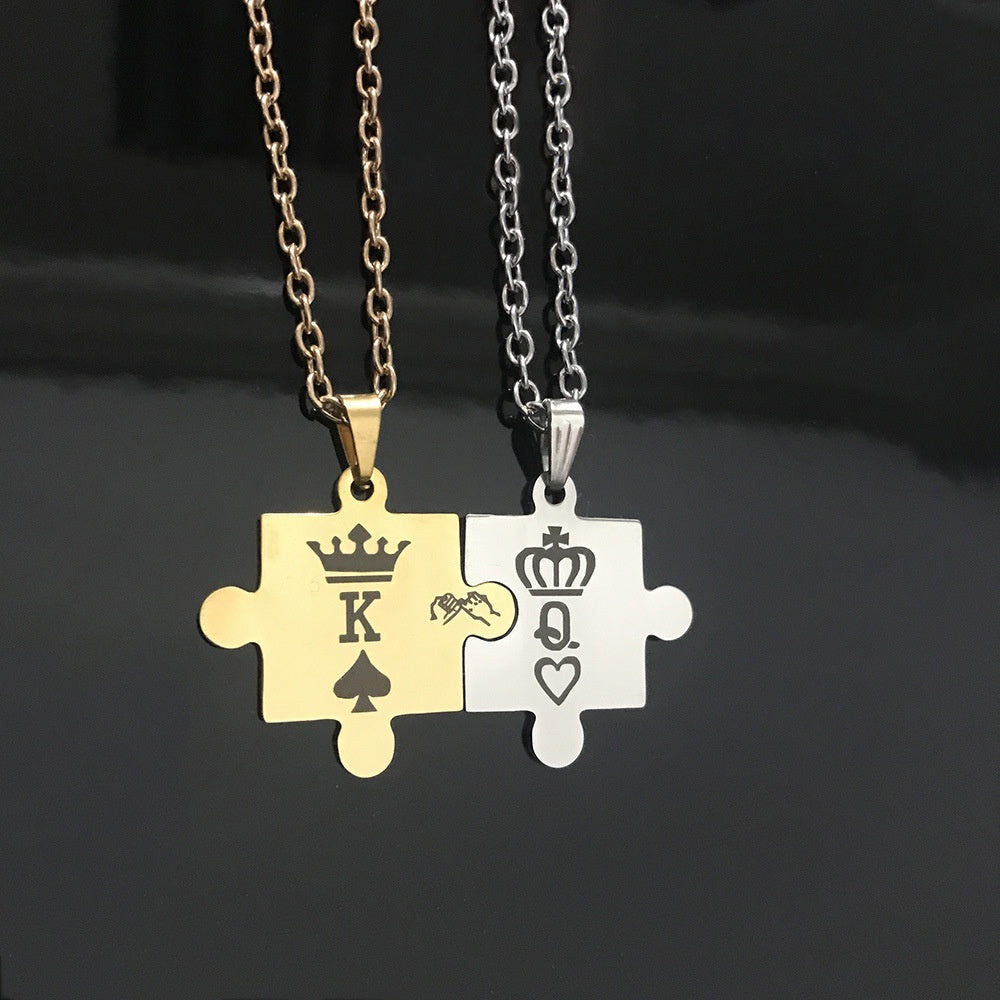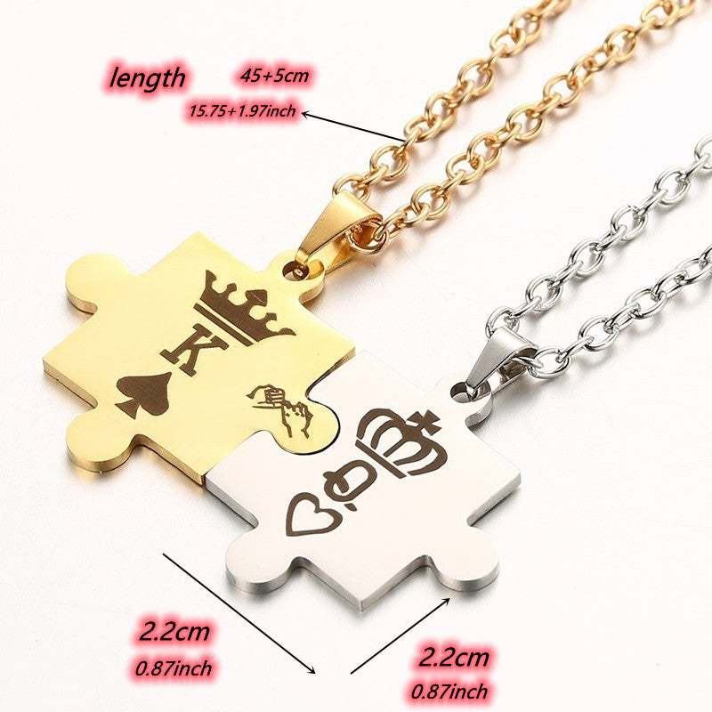 This stylish stainless steel pendant necklace makes a perfect gift for women. Featuring king and queen stitching design, it symbolizes love and unity.