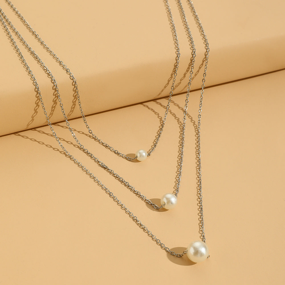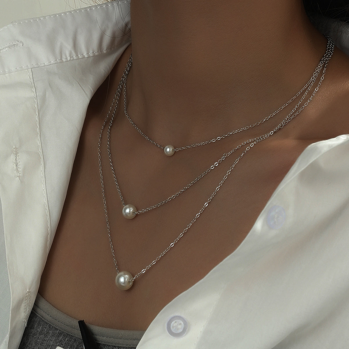 Elevate your style with this stunning layered pearl necklace collarbone chain. Perfect for casual or formal occasions.
