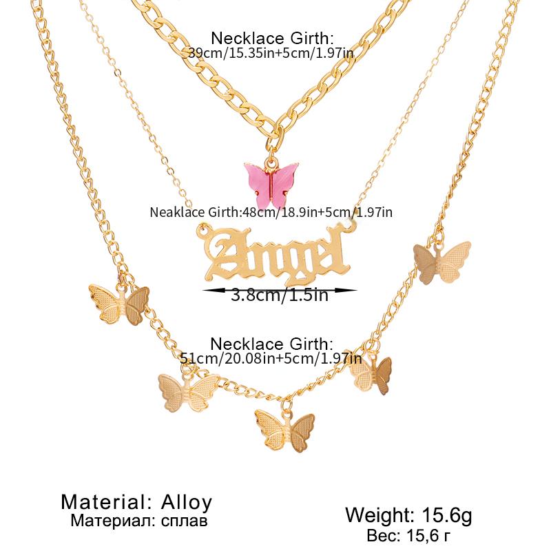This stylish layered necklace features a letter and butterfly charm design.