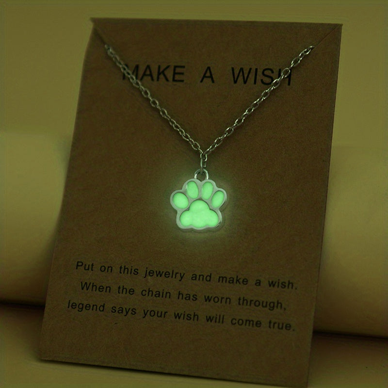 This stylish necklace features a luminous dog paw pendant, perfect for pet lovers. It glows in the dark and is a great accessory for women and girls.
