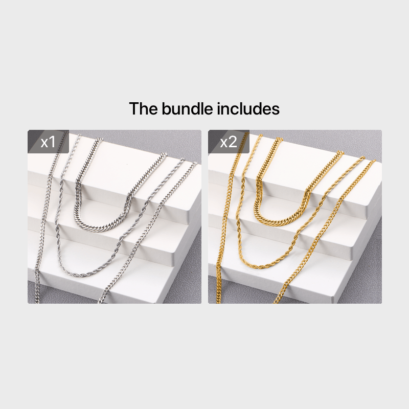 This set includes 3 stylish and durable stainless steel chain necklaces for men.