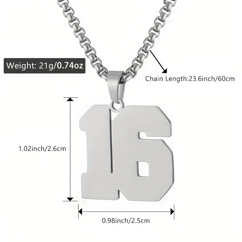 This stylish pendant necklace features an athlete's number design, perfect for sports enthusiasts. Made of durable stainless steel, suitable for boys who love baseball, basketball, football, and more.