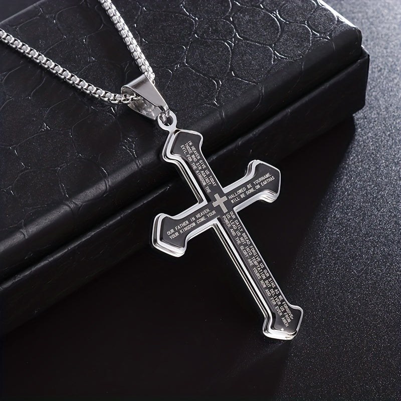This men's cross pendant necklace is a perfect gift for men, women, or friends. Made of high-quality stainless steel, it features a Bible cross design that is ideal for any occasion.