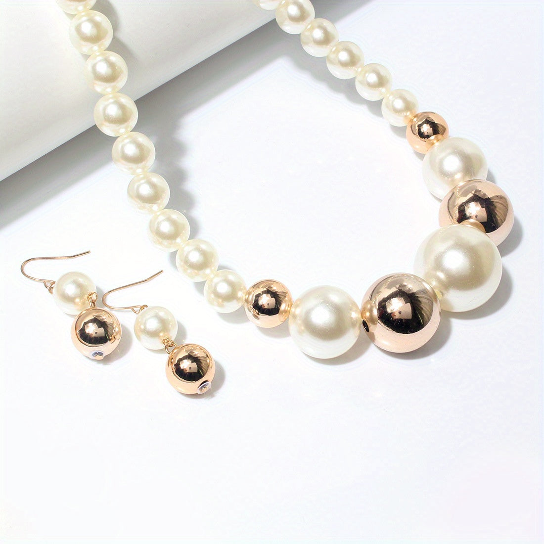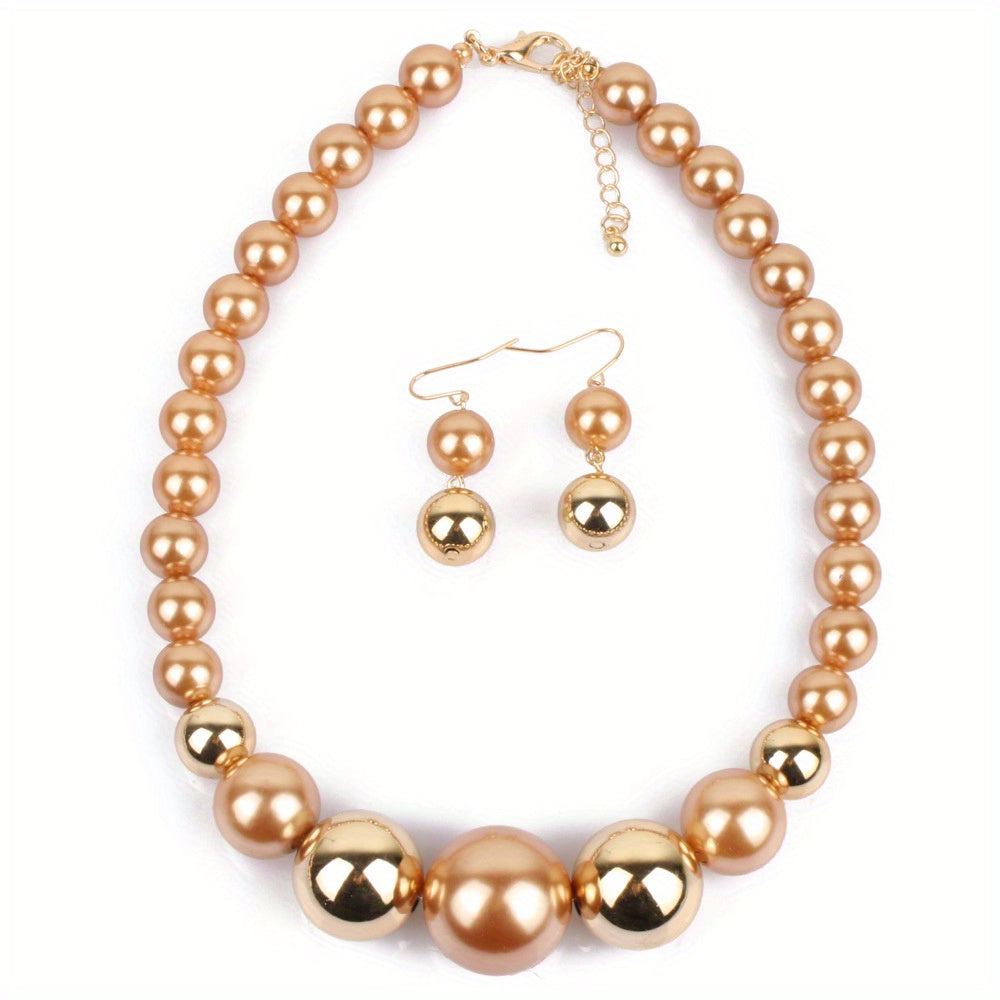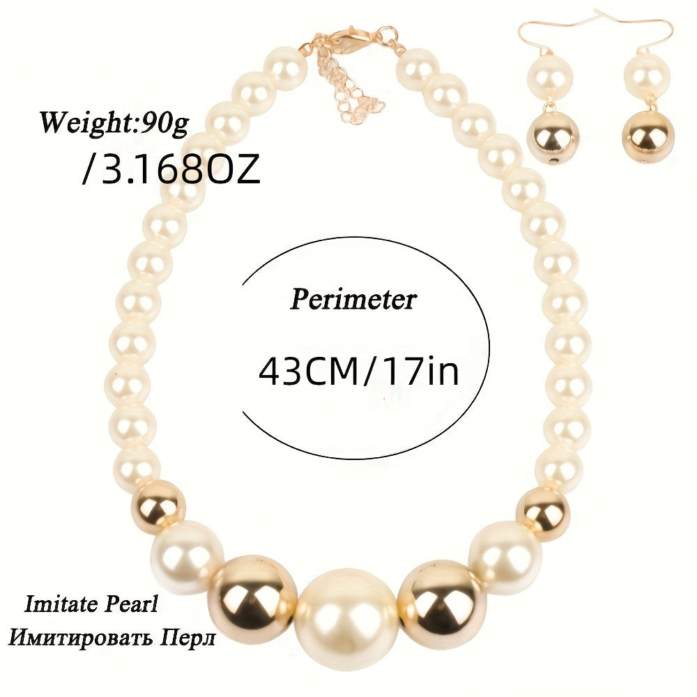 Complete your daily outfits or party look with this set of 3 earrings and a necklace featuring milky stones. The pieces are 14k gold plated for a luxurious touch.