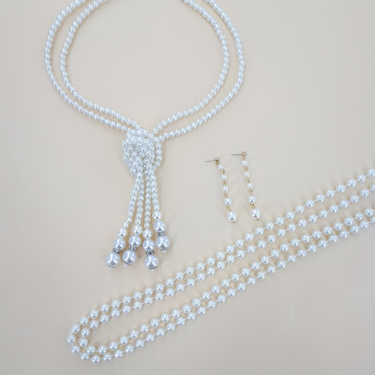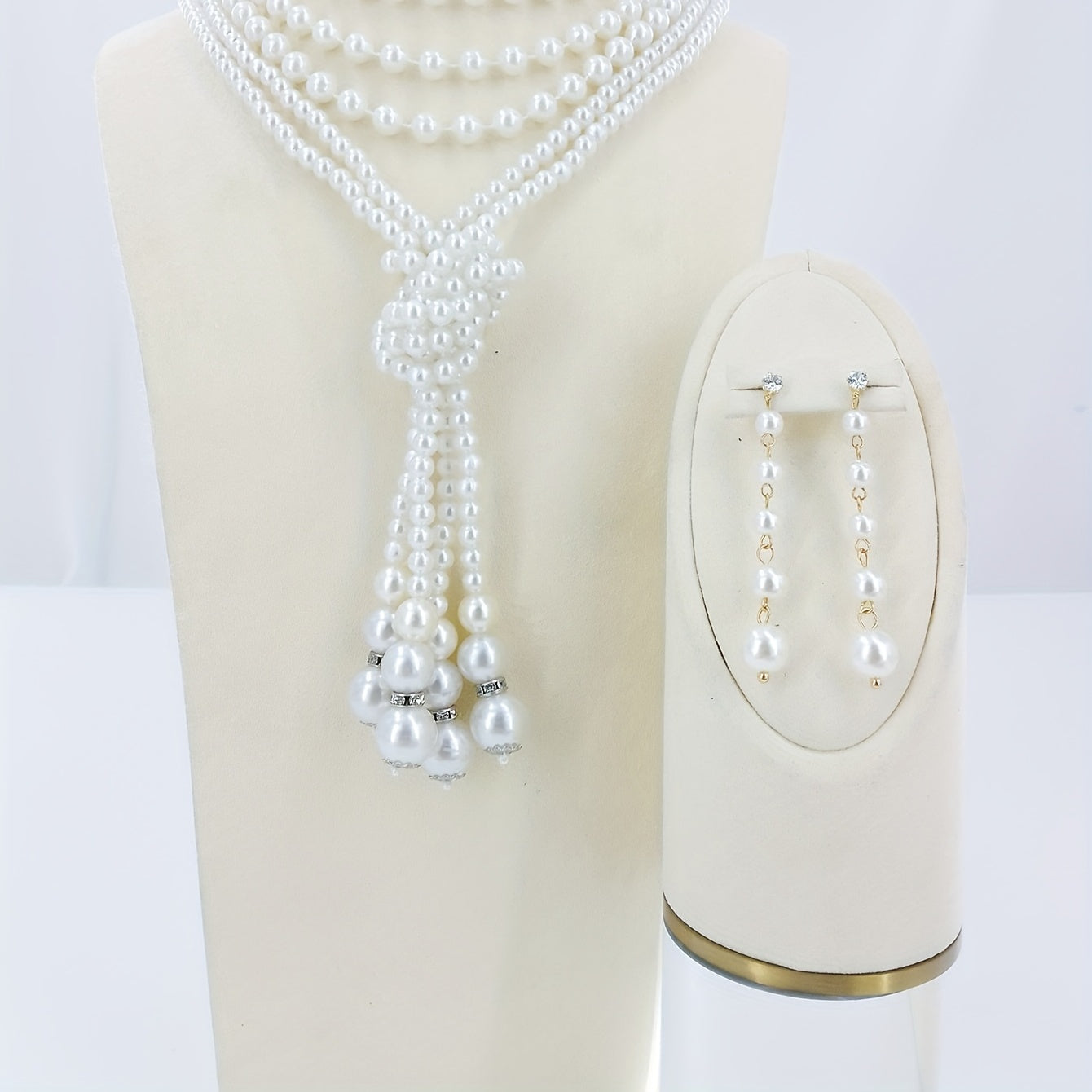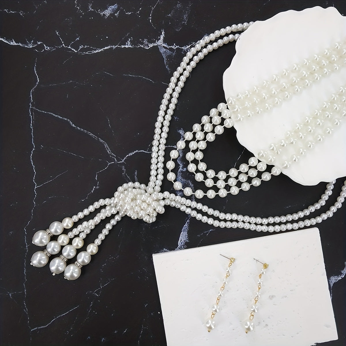 This stunning 3-piece jewelry set includes earrings and a necklace made with milky stones. Perfect for evening parties or cocktail events. Makes a dainty birthday gift for females.