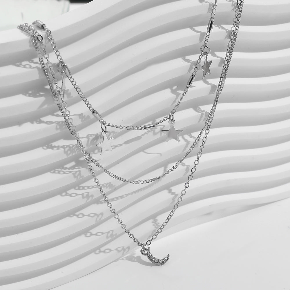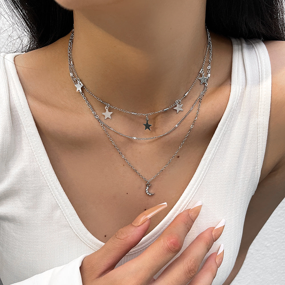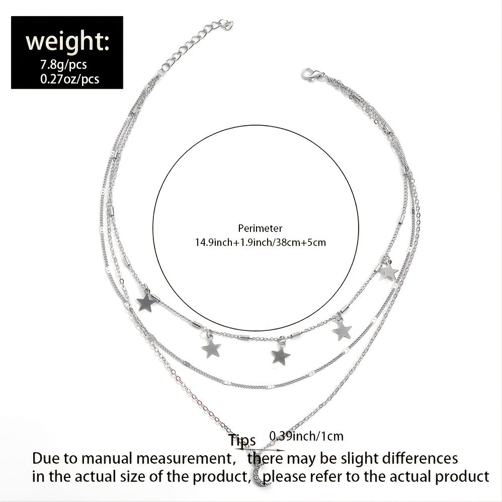 Add a touch of vintage charm to your summer look with this moon and star shape pendant necklace. Featuring three layers of adjustable chains, this necklace is perfect for beach and surfing outings.