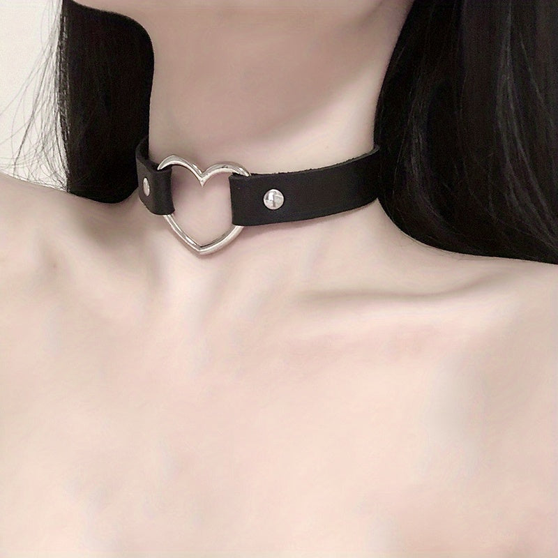 Make a bold statement with this punk style PU leather choker necklace. Perfect for adding an edgy touch to your outfit for a night out at the nightclub.