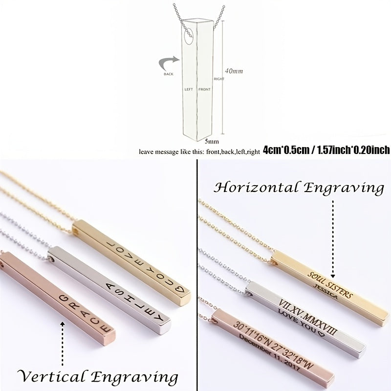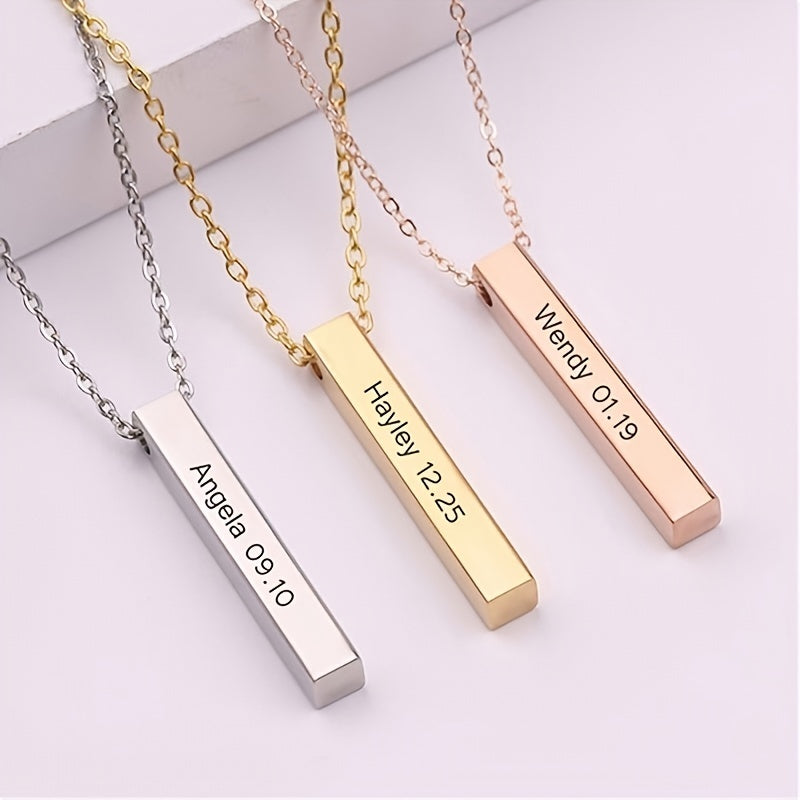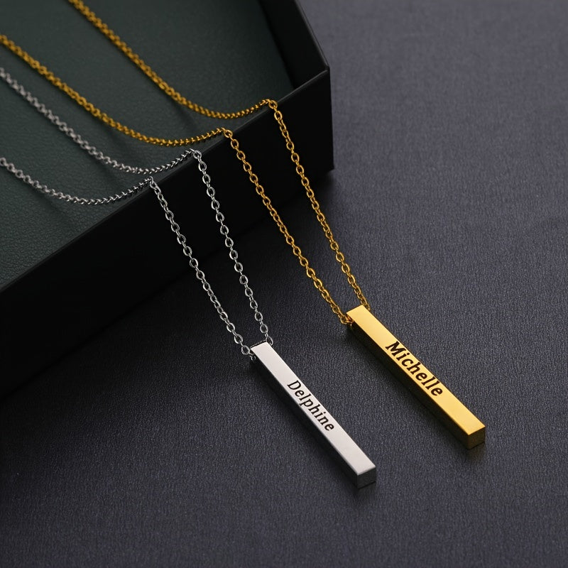 Get this custom engraved name necklace made of durable stainless steel. Perfect accessory for any party or event.