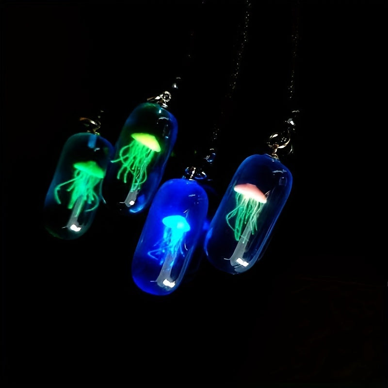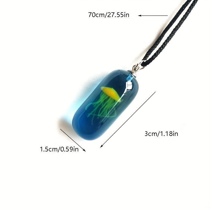 Add a touch of the ocean to your outfit with this luminous jellyfish necklace. The resin pendant glows in the dark for a stunning effect.