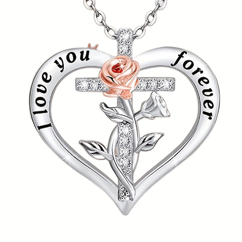 Unique rose cross necklace for men, a perfect gift for wife or girlfriend. This statement pendant is crafted with high-quality materials.