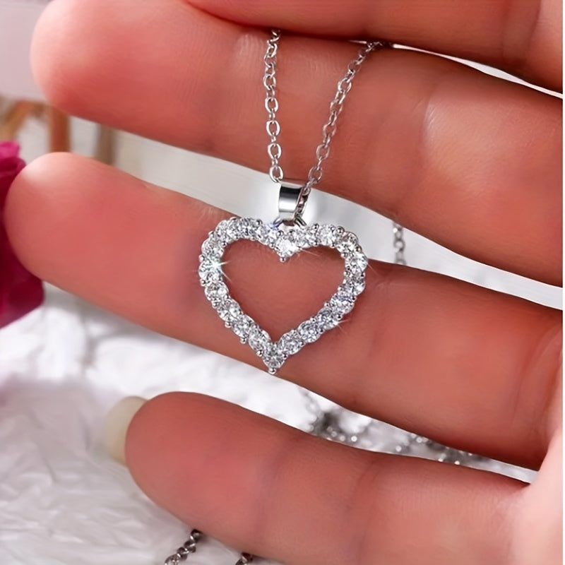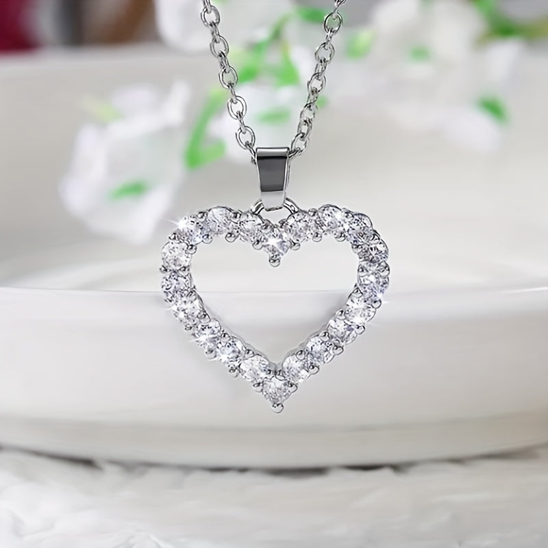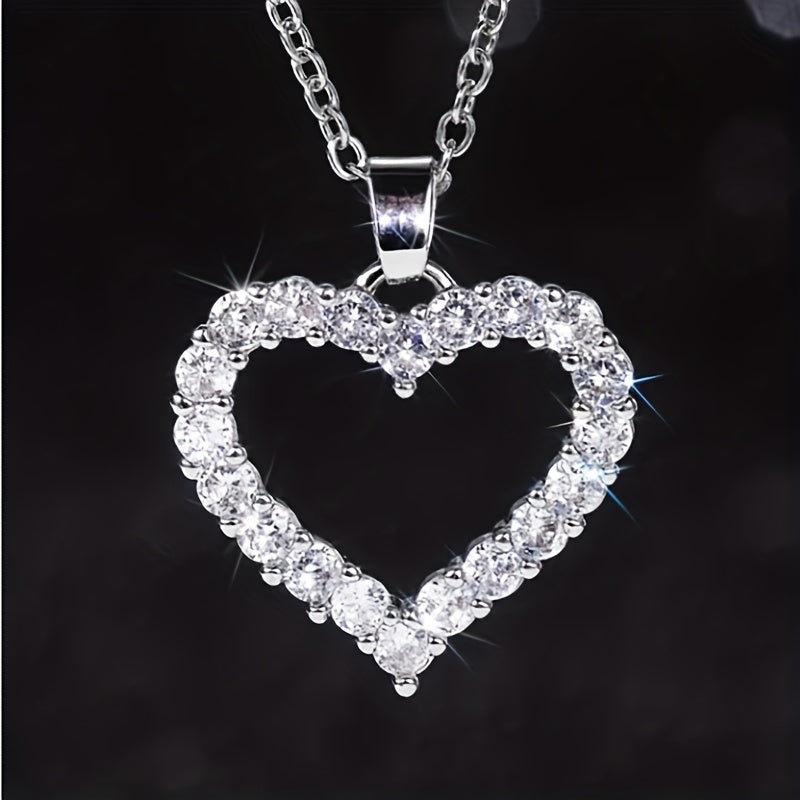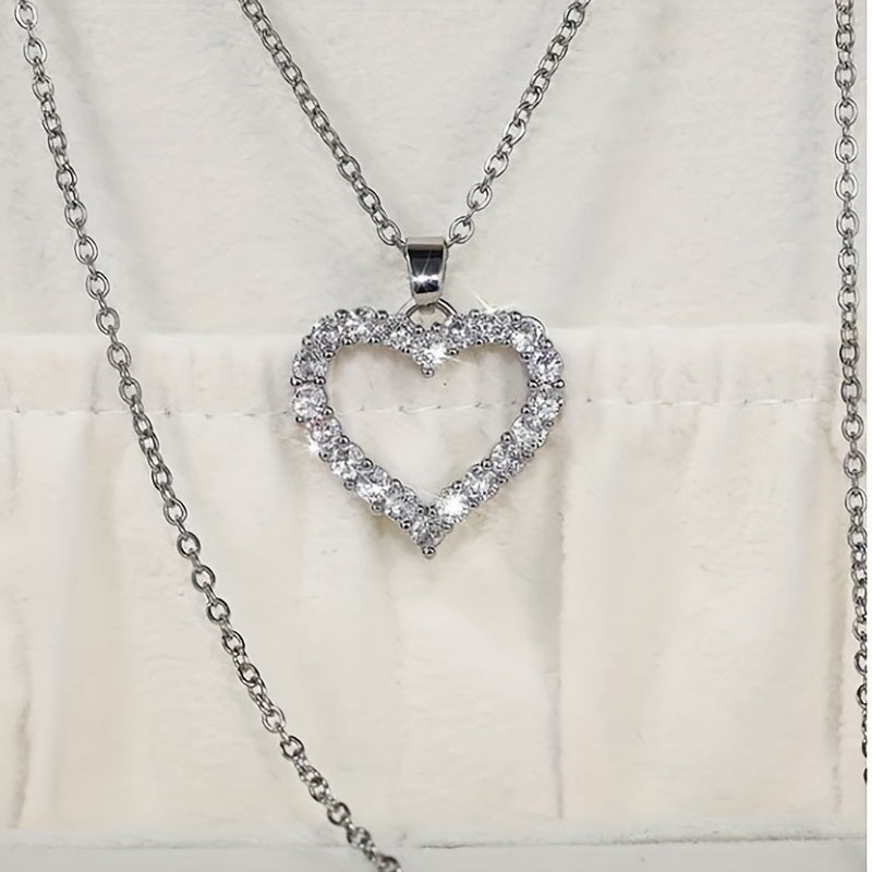 This stylish unisex necklace features a full faux diamond love pendant in silver. It is a fashionable accessory suitable for men.