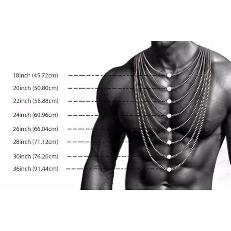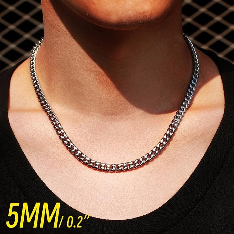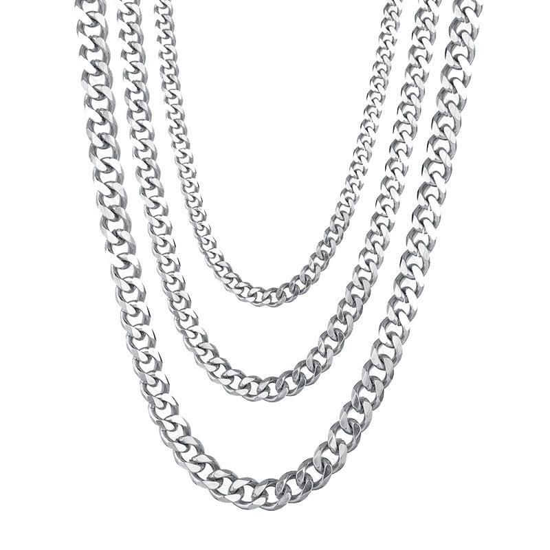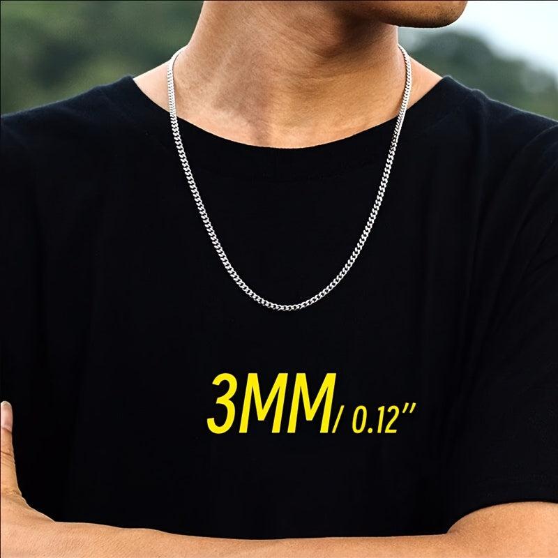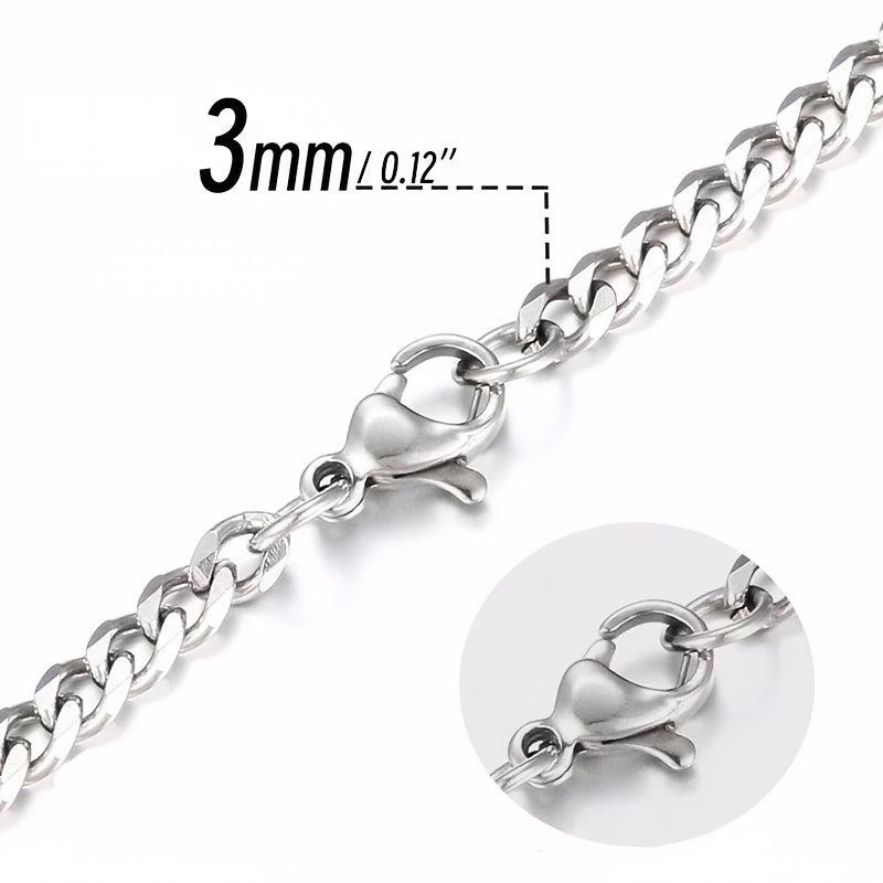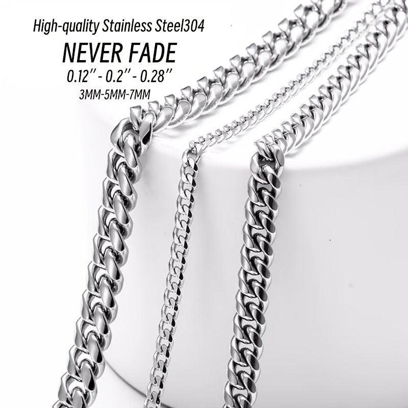 Elegant and durable stainless steel chain necklace for men and unisex. Available in 3mm, 5mm, and 7mm widths.