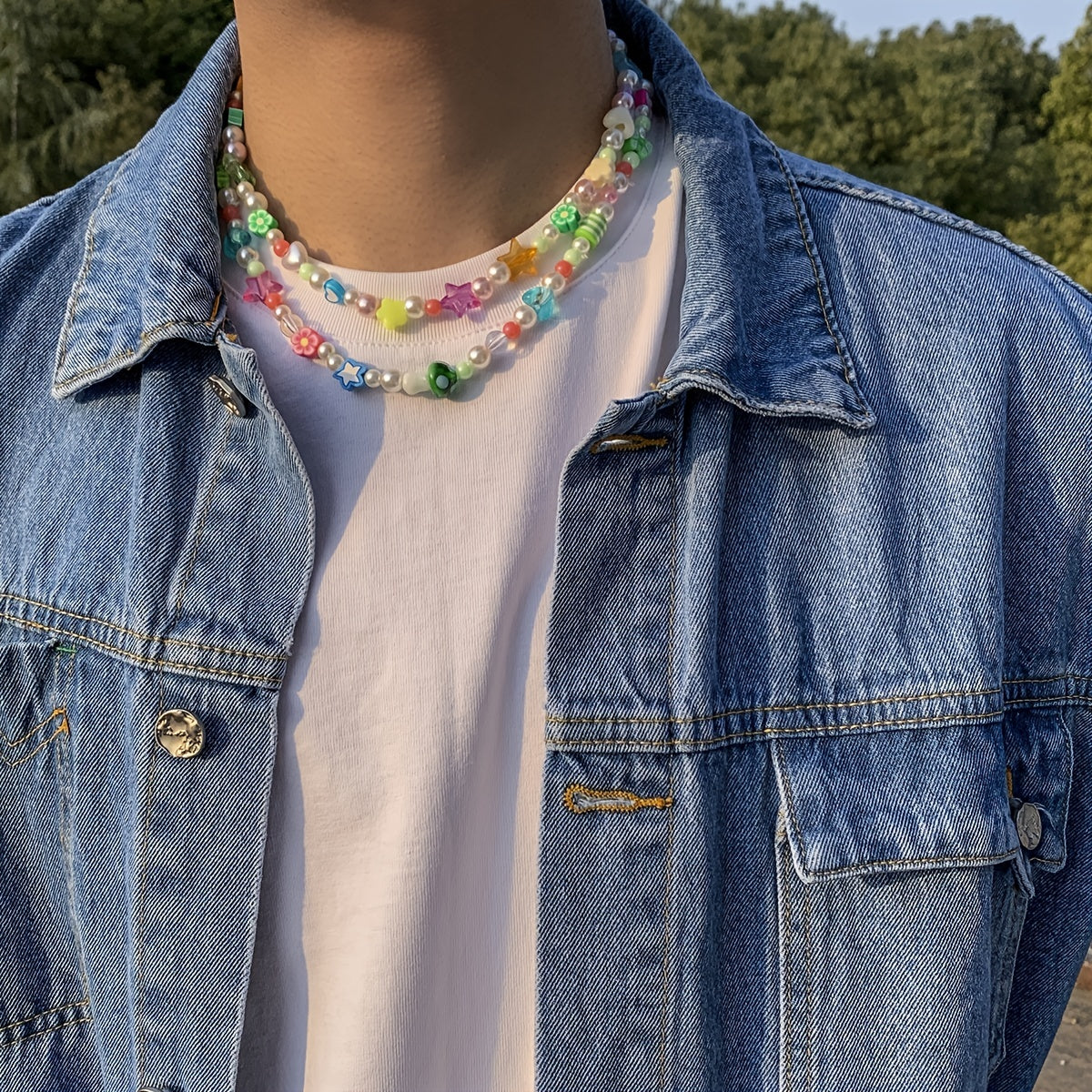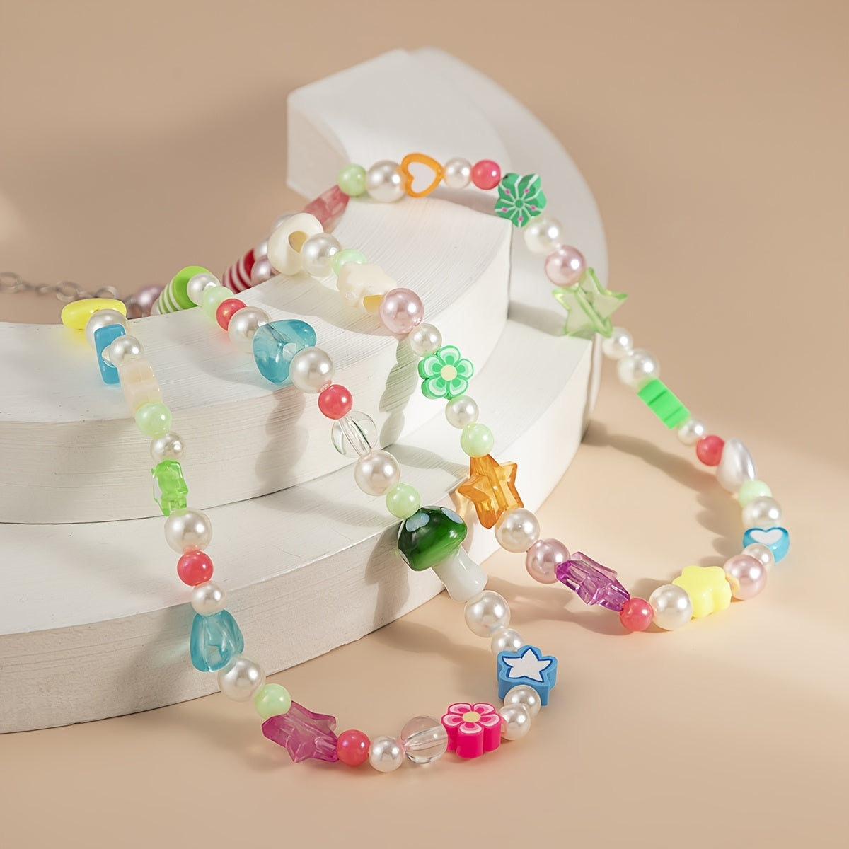 This stylish and unique necklace features star fruit, mushroom, love, and pearl beads, making it a great accessory for men.