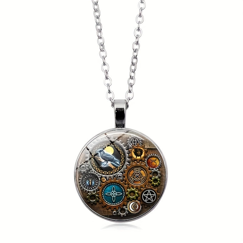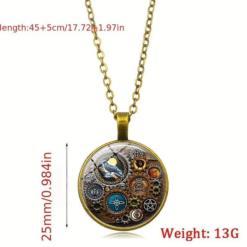 This men's steampunk necklace features a mechanical time gem pendant, perfect for a retro style. Great jewelry for unisex.