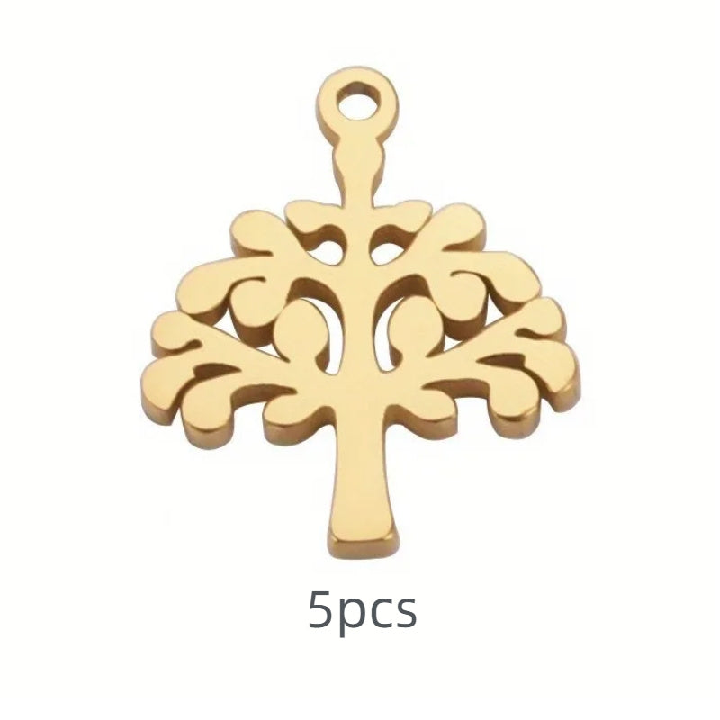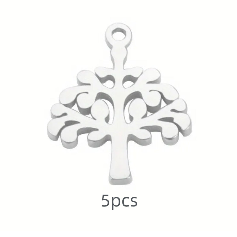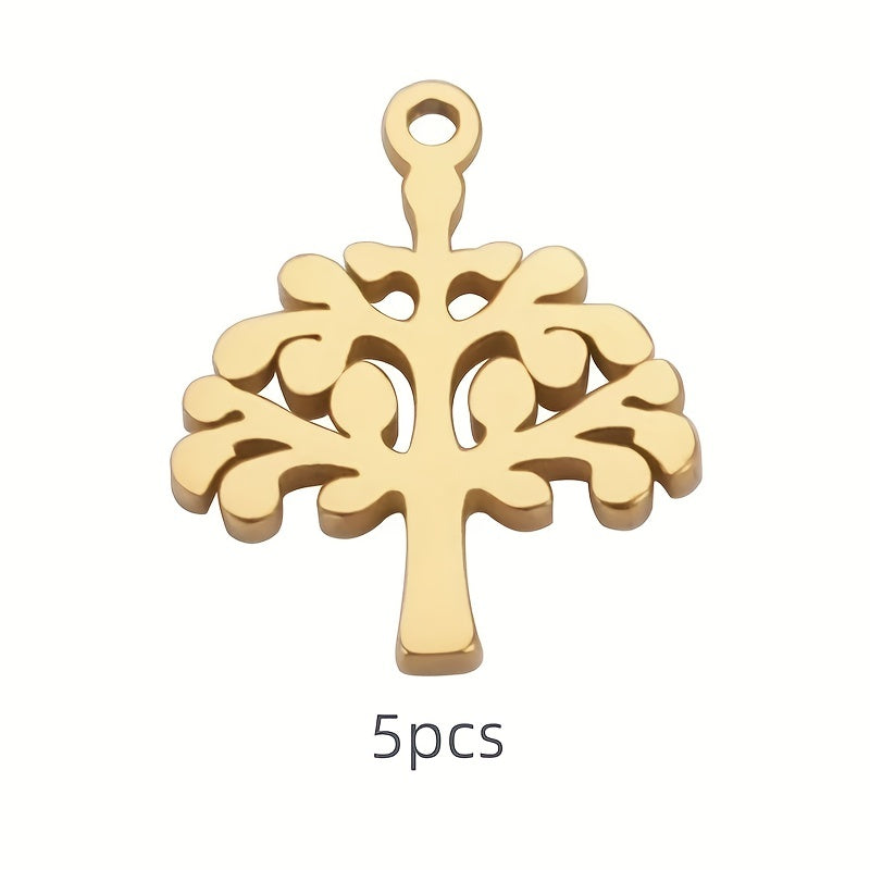 Enhance your jewelry collection with this 5-piece set of Tree of Life pendants made of high-quality stainless steel. Perfect for necklaces or bracelets, adding charm to your accessories.