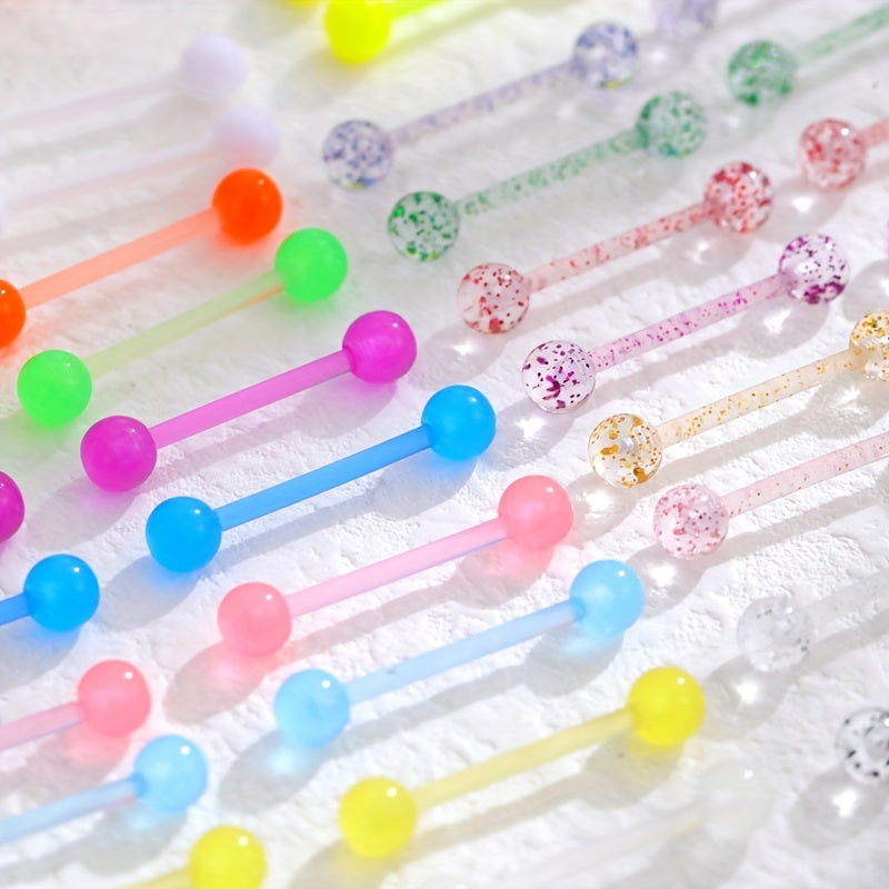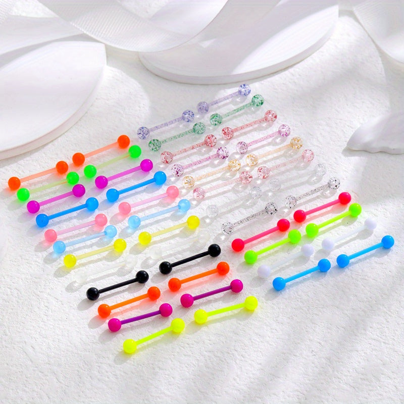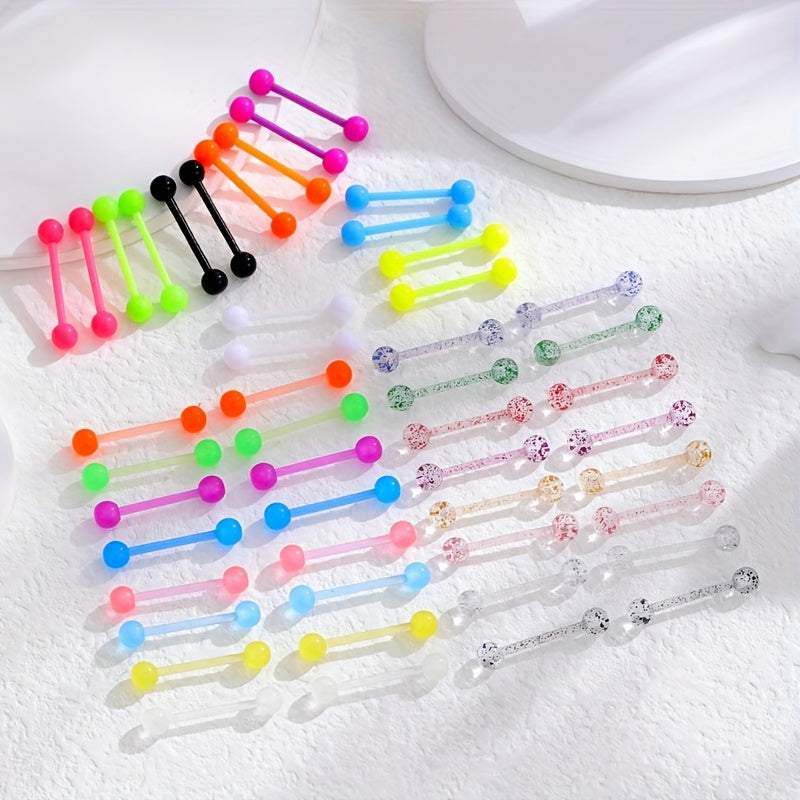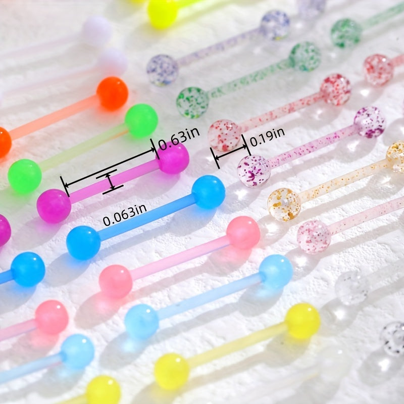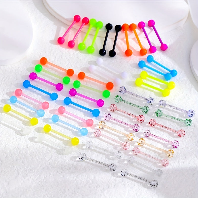 Elevate your style with this set of 48 acrylic tongue stud rings. Perfect for body piercing jewelry enthusiasts.