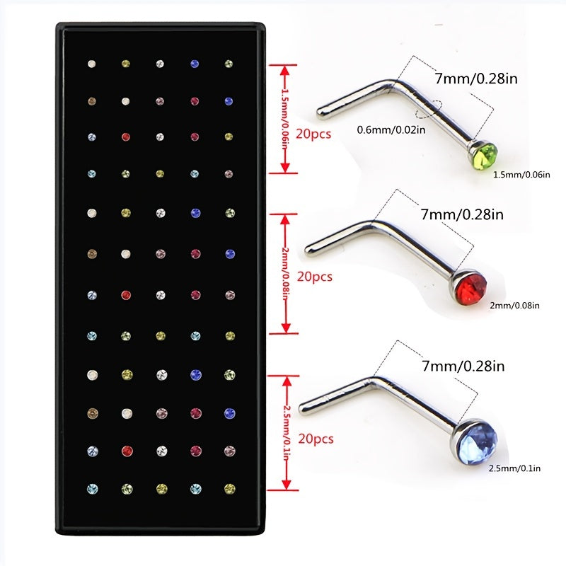 Enhance your look with these 18G surgical steel nose stud rings featuring artificial diamond CZ. Choose from 1.5mm, 2mm, and 2.5mm sizes.