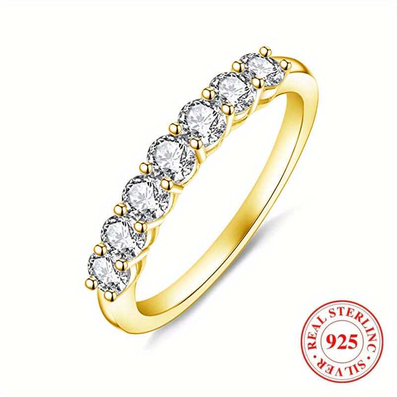 Unique and trendy band ring crafted with 925 silver and inlaid zircon. Plated with 14K gold copper for a luxurious touch.