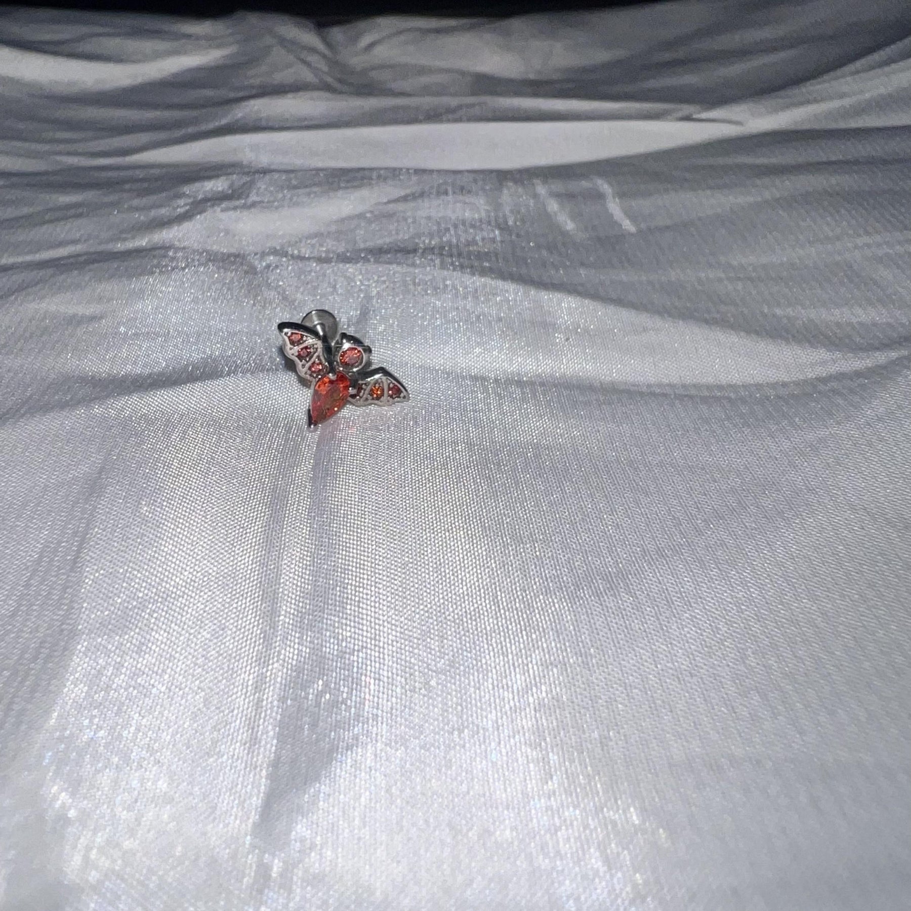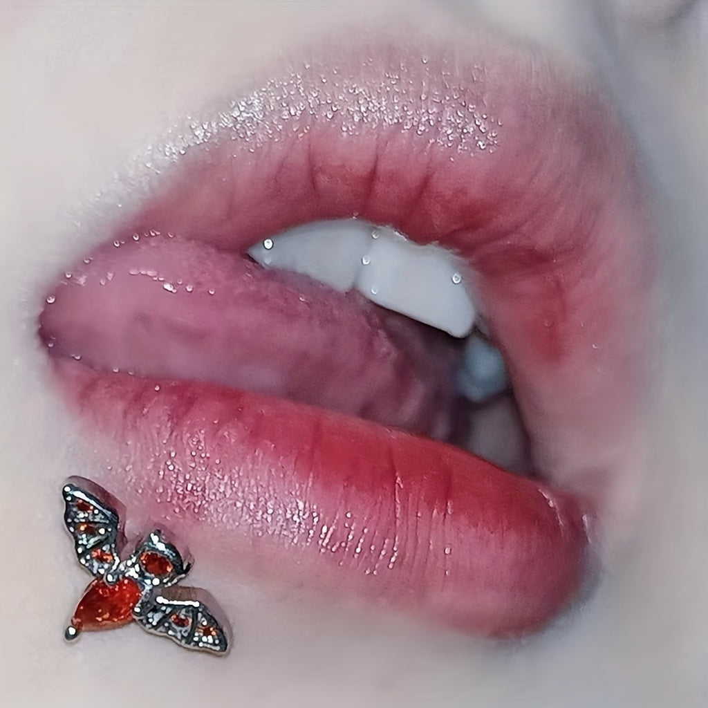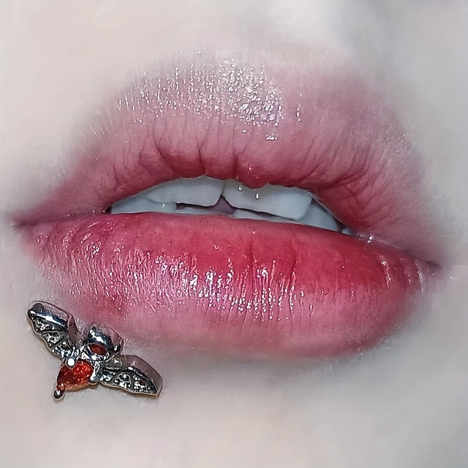 Get into the Halloween spirit with this punk-style lip ring featuring a bat shape design and a red faux crystal. Perfect for adding a touch of edgy style to your look!